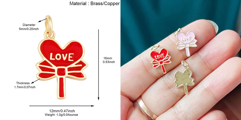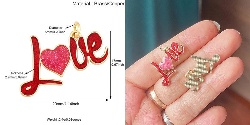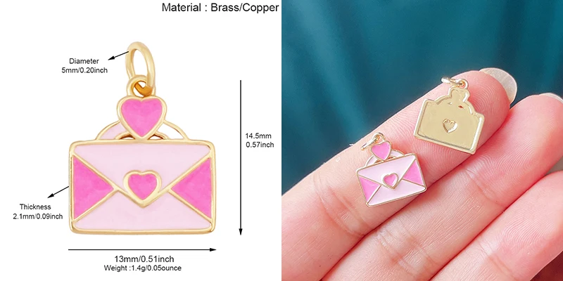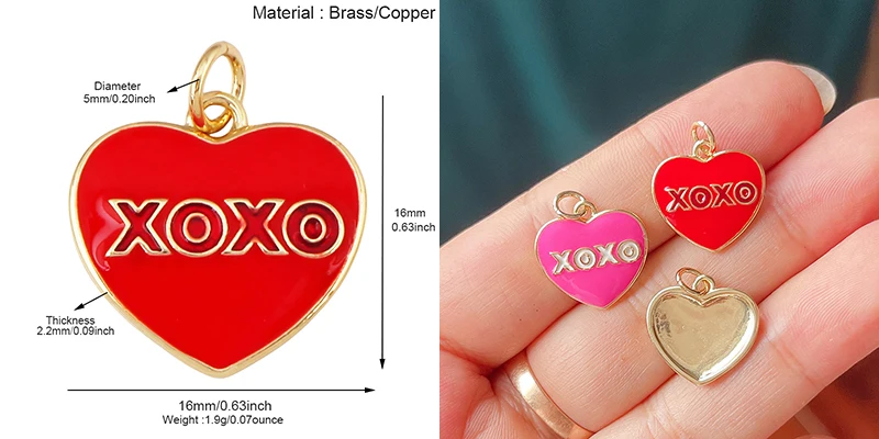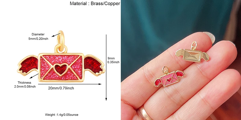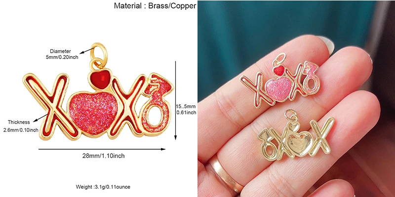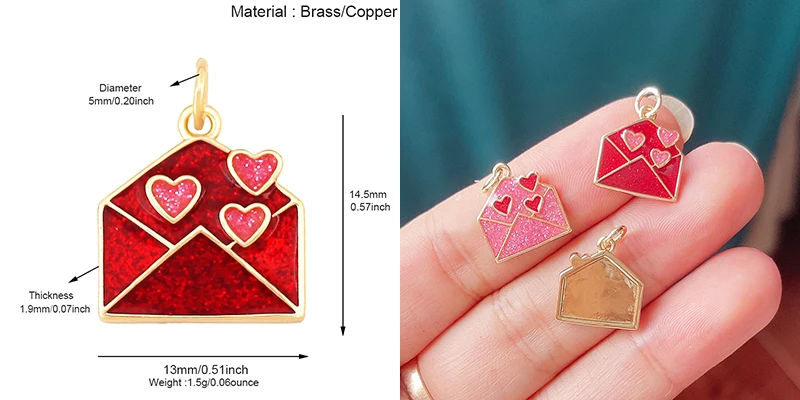 Glitter Red Kiss XOXO Love Heart Envelpe Charm, Brass 18K Gold Plated Necklace Bracelet DIY Jewelry Findings Making Supplies S61