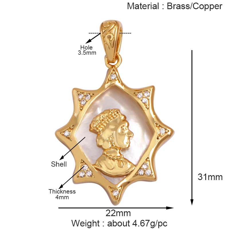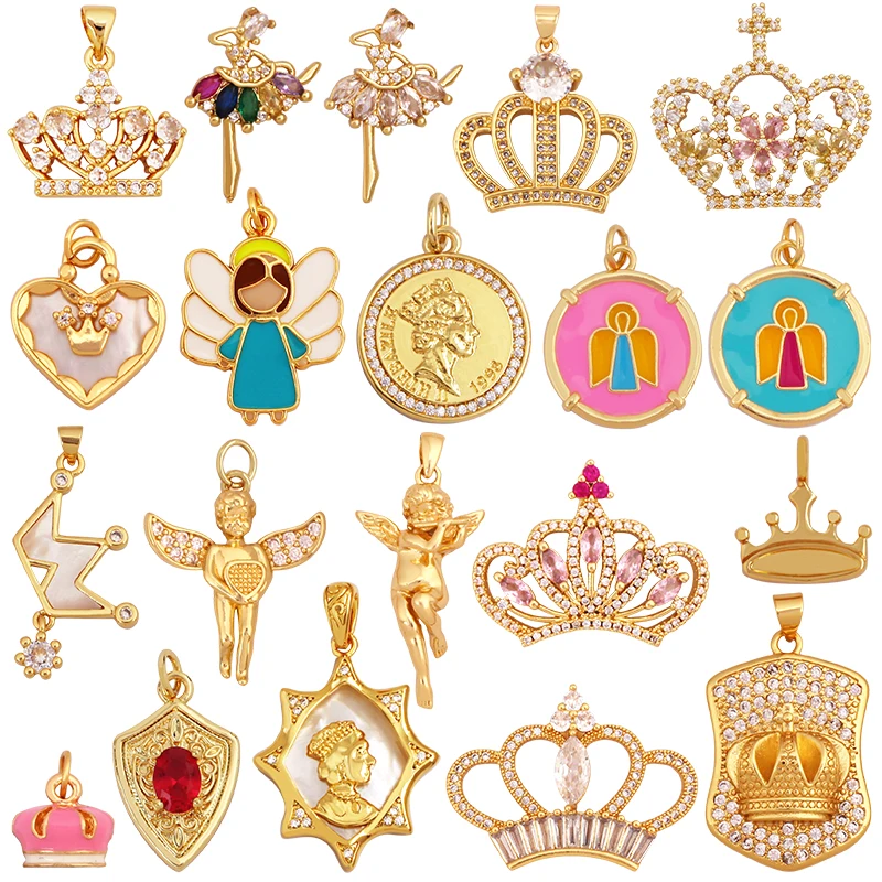 Home > New Arrival > Guarden Angel Crown Goddess Amulet Medallion Zircon Charm Pendant,Real 18K Gold Plated Necklace Jewelry Findings Supplies S06