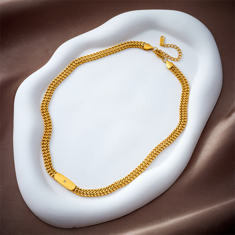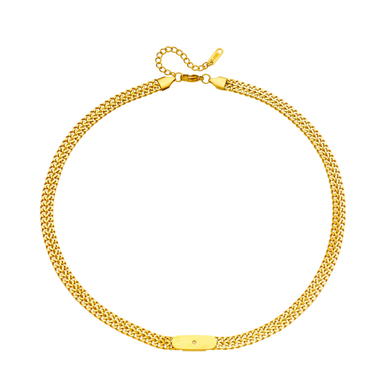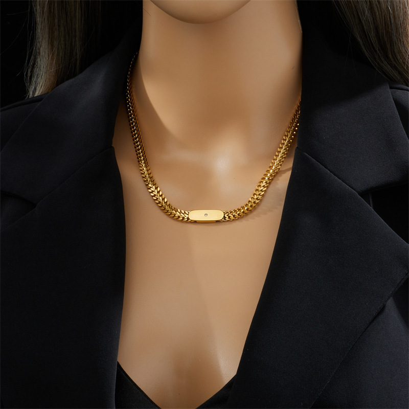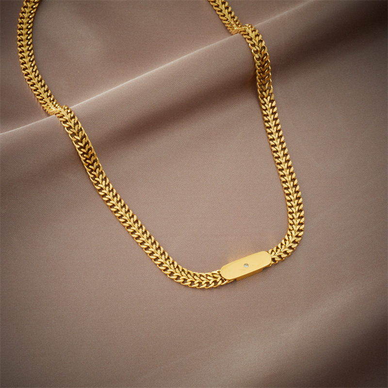 Hip-hop popular titanium steel square plaque spliced Cuban chain street punk fashion unique niche necklace