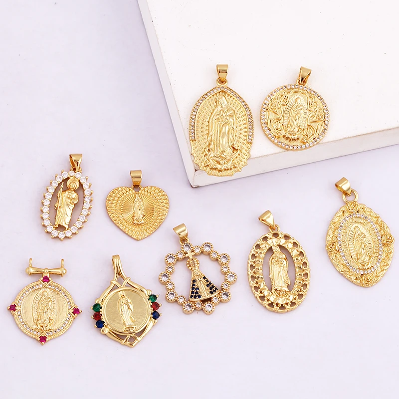 Home > Pendants and charms > Holy Jesus Virgin Mary Charm Geometry Pendant,Religious 18K Gold Inlaid Cubic Zirconia Jewelry Necklace Accessories Supplies M51