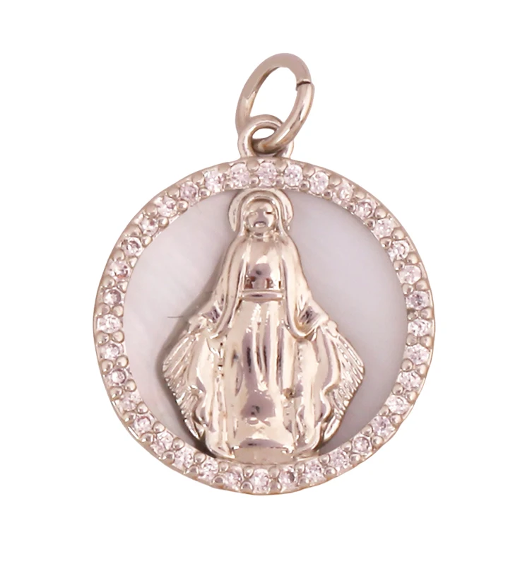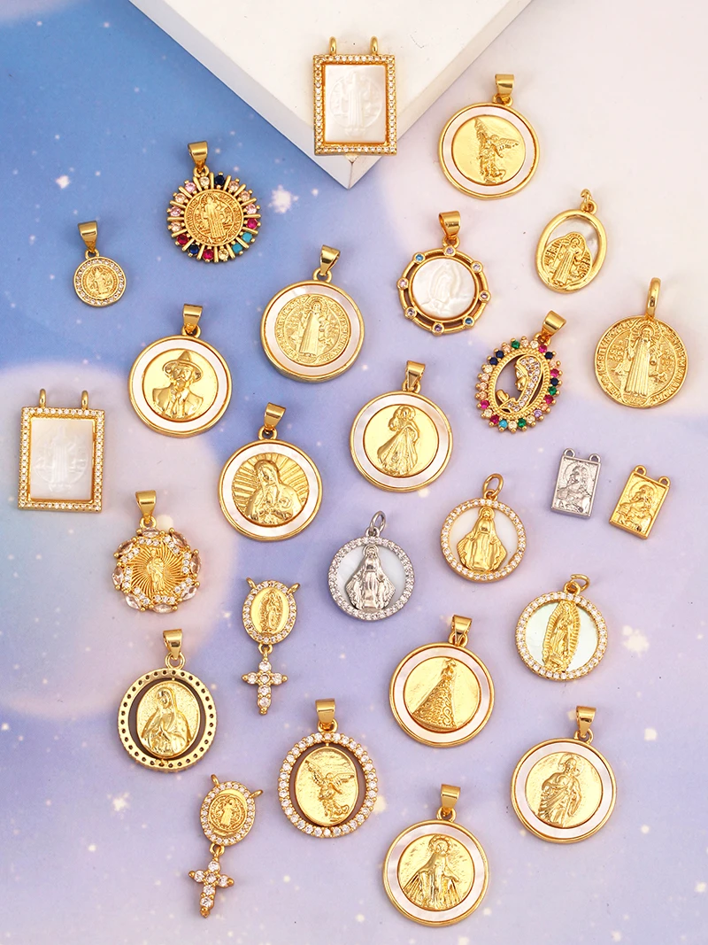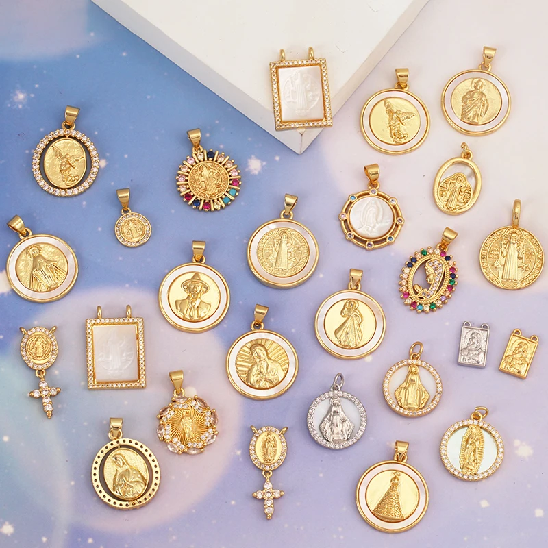 Holy Religious Style Jesus Virgin Mary Charms Pendant,Real 18K Gold Plated Zircon Shell Jewelry Necklace Accessories Supply S15