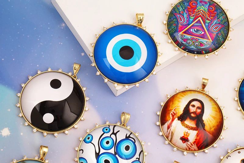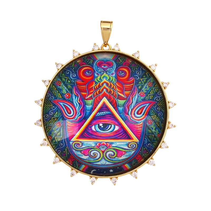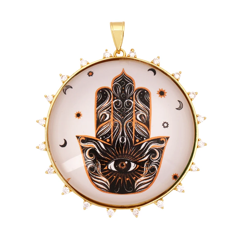 Jumbo Holy Religious Jesus Virgin Mary Evil Eye Hand Charm Pendant,Real 18K Gold Plated Jewelry Necklace Bracelet Supplies S16