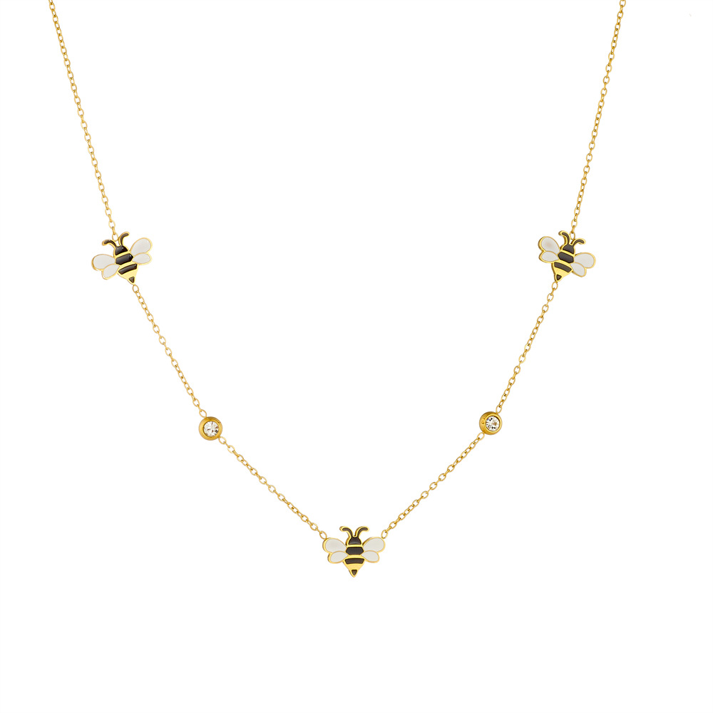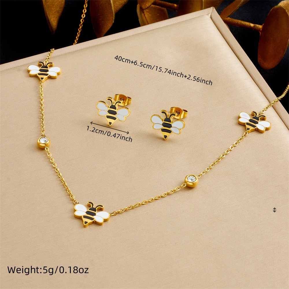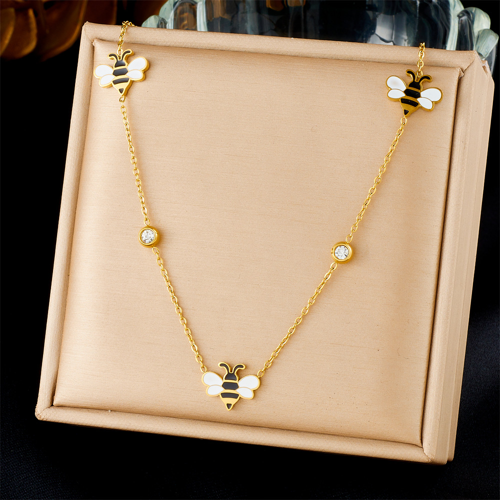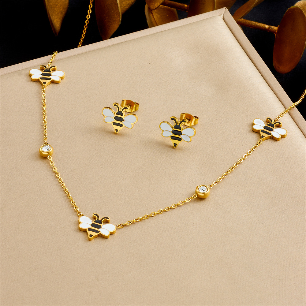 Korean style, fashionable, fresh, sweet cartoon dripping animal bee accessories chain stainless steel jewelry set