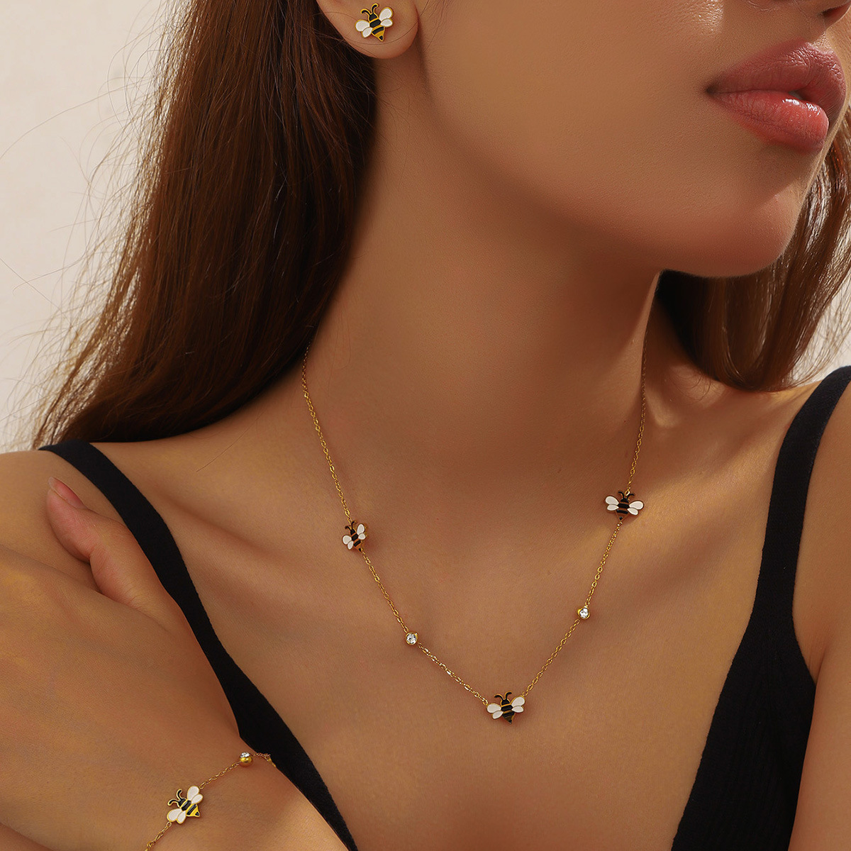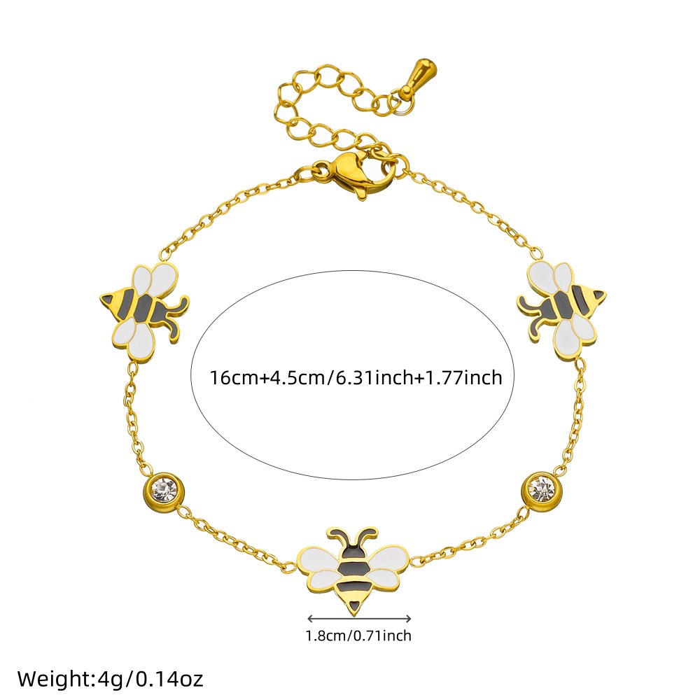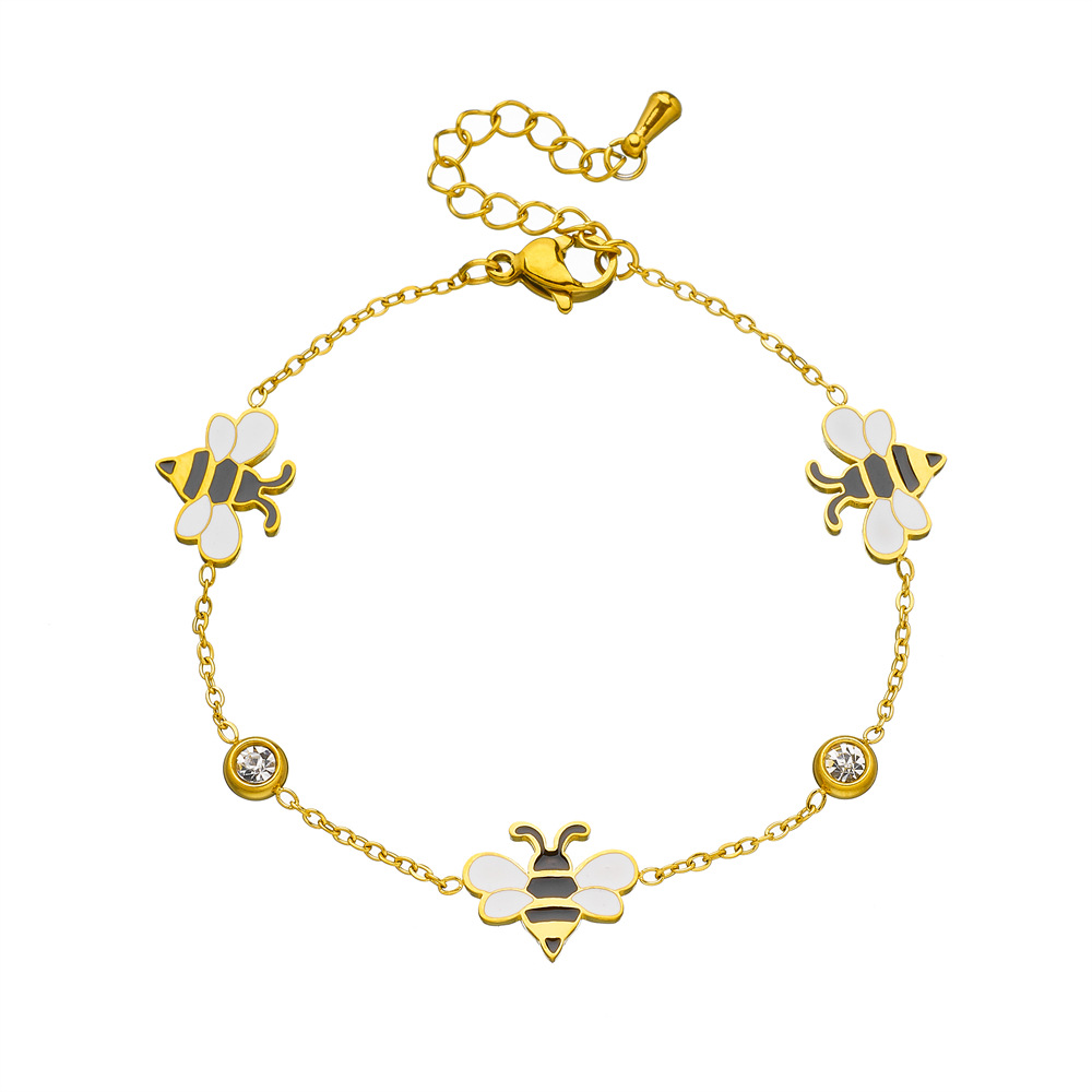 Korean style, fashionable, fresh, sweet cartoon dripping animal bee accessories chain stainless steel jewelry set