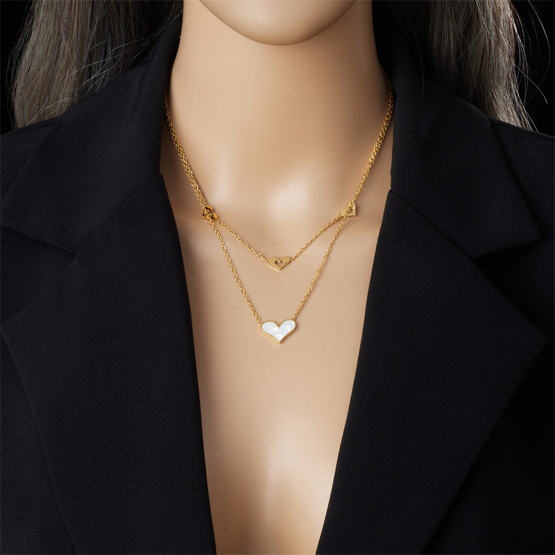 Korean style, fashionable, simple, shell and heart hollowed-out pendant, stainless steel chain, double-layered gold-plated necklace.