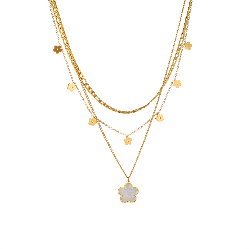Home > New Arrival > Korean style, fashionable, versatile, retro, gold-plated flower stainless steel pendant chain, multi-layered jewelry necklace.