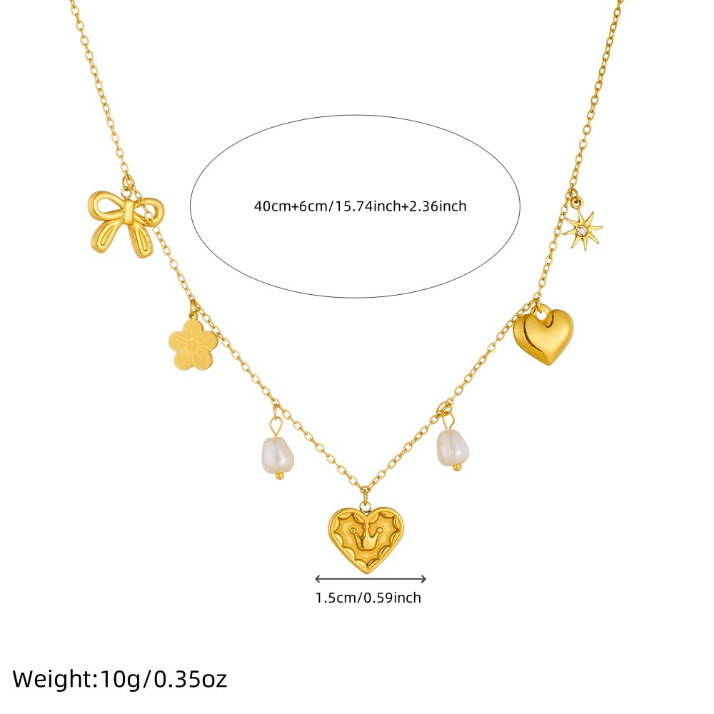 Korean style, fashionable and simple design, multi-element accessories, stainless steel heart crown bow pearl chain necklace