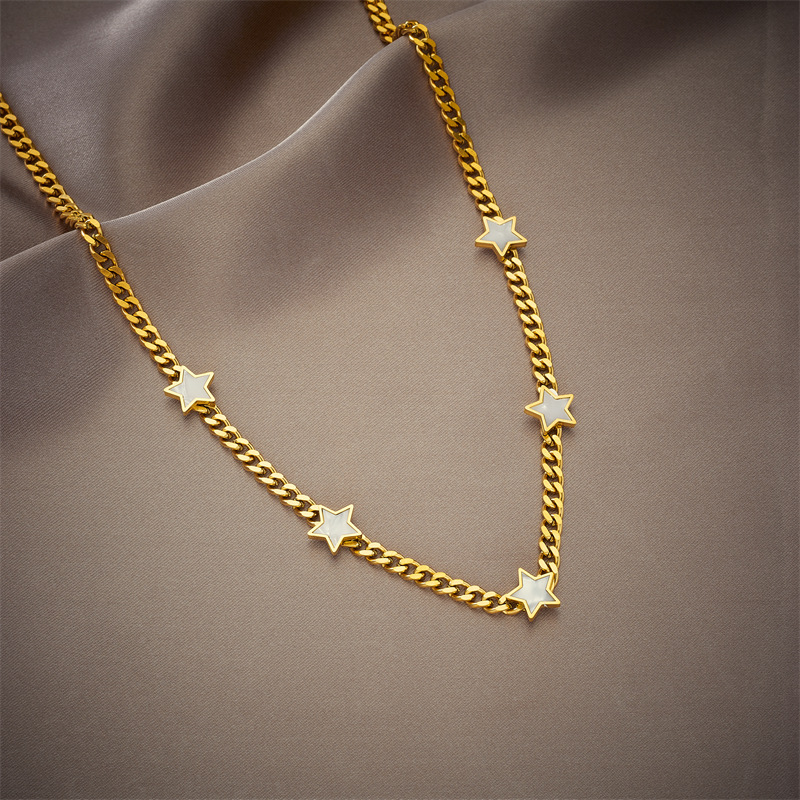 Home > New Arrival > Korean-style, trendy, niche design, elegant and versatile, five-pointed star chain titanium steel metal jewelry, exquisite clavicle necklace.