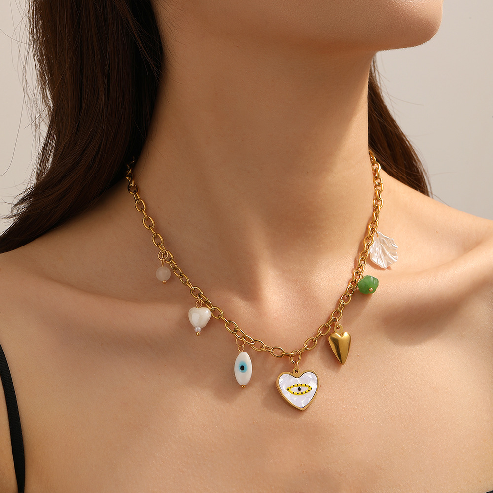 Korean style, unique, versatile, dripping oil, evil eye, heart, pumpkin pendant chain, stainless steel necklace.