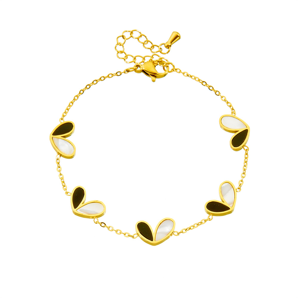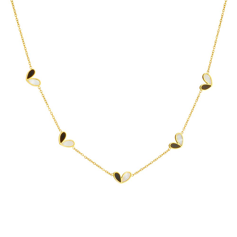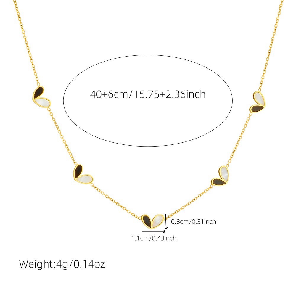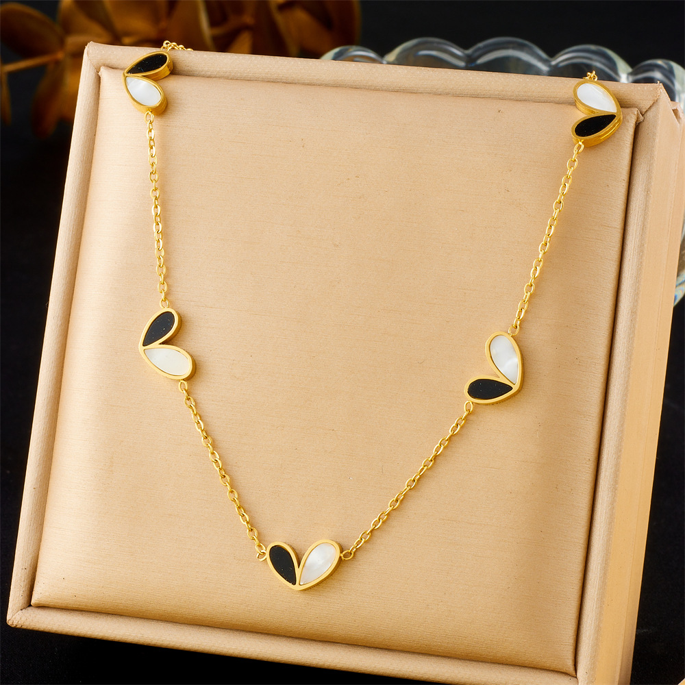 Korean style fashion black and white two-tone heart accessory versatile thin chain simple stainless steel necklace earring bracelet set