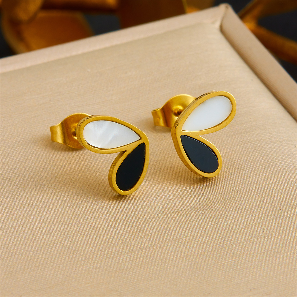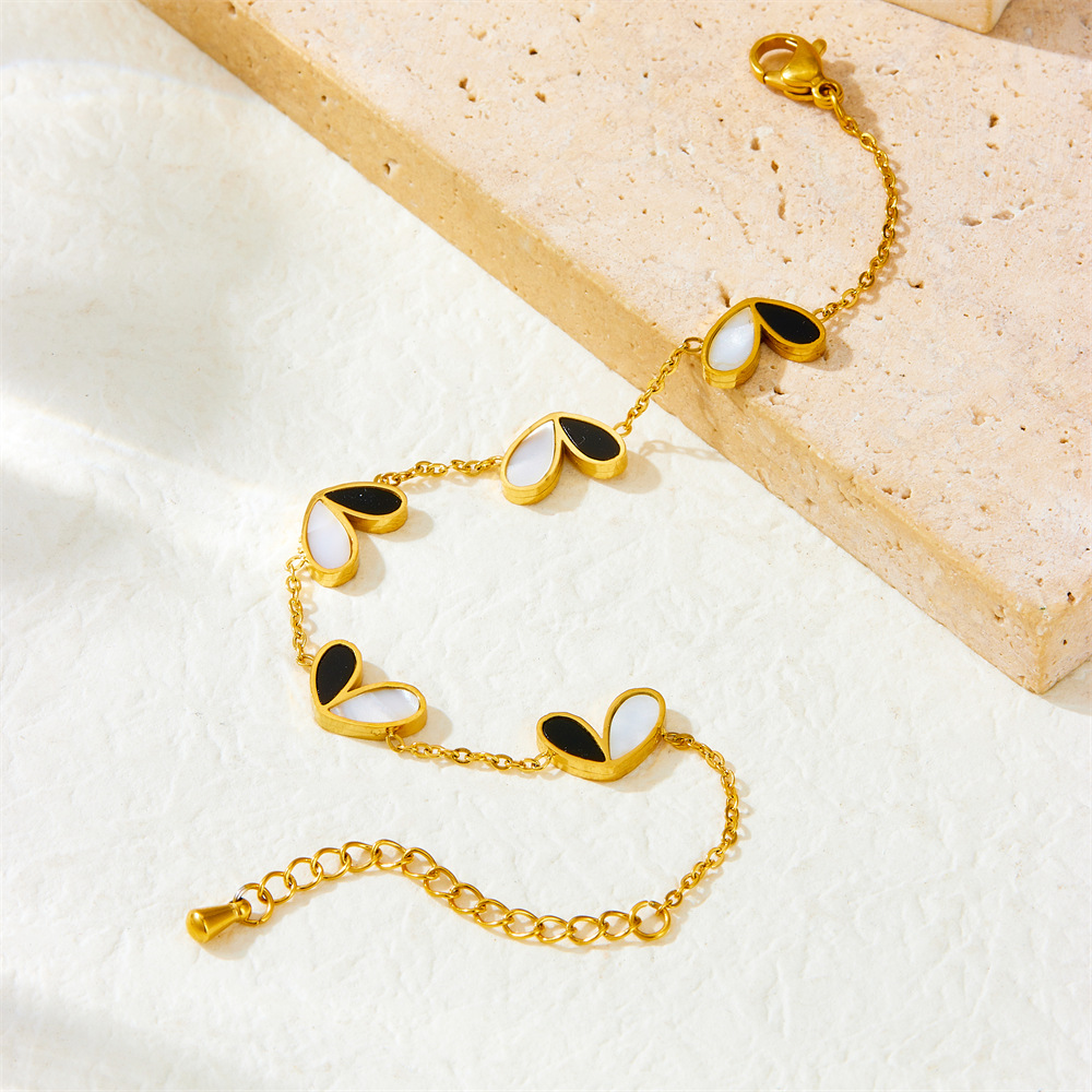 Home > New Arrival > Korean style fashion black and white two-tone heart accessory versatile thin chain simple stainless steel necklace earring bracelet set