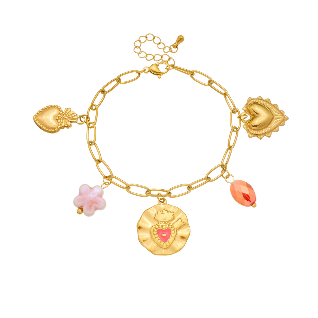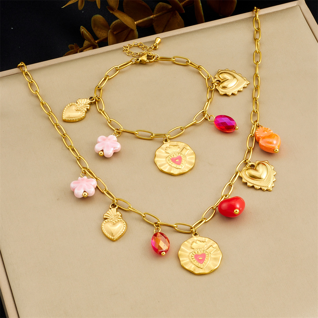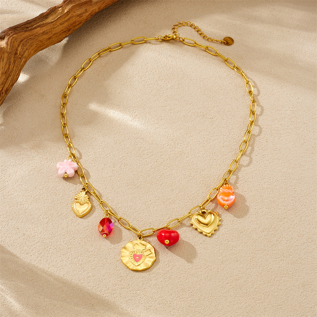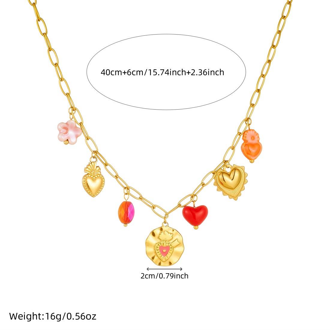 Home > New Arrival > Korean-style fashionable Instagram-inspired multi-element gold-plated round pendant with irregular dripping heart and flower design, stainless steel set.