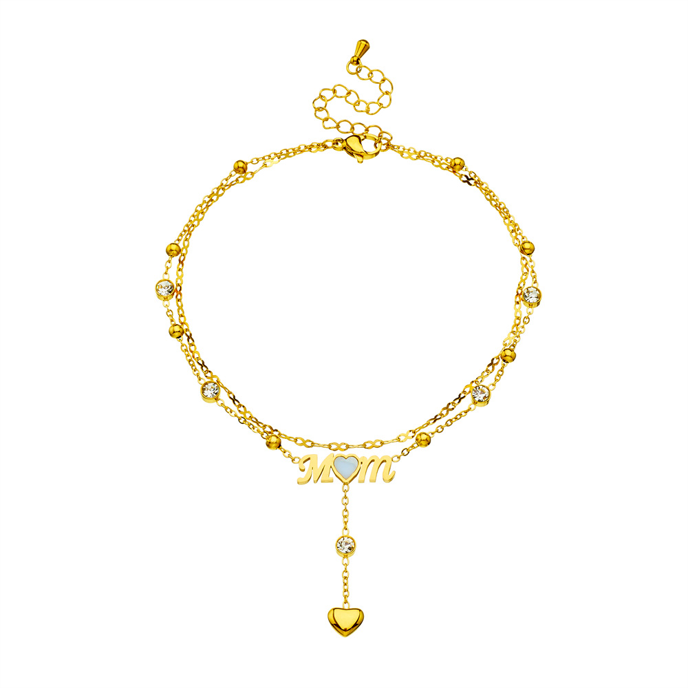 Home > New Arrival > Korean style niche diamond-encrusted heart letter mom tassel chain stackable stainless steel jewelry gold-plated women's anklet