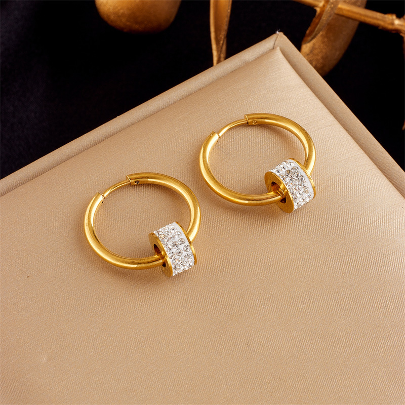 Korean-style trendy niche design, full diamond, slim waist, titanium steel rotating pendant, simple, elegant and unique earrings.
