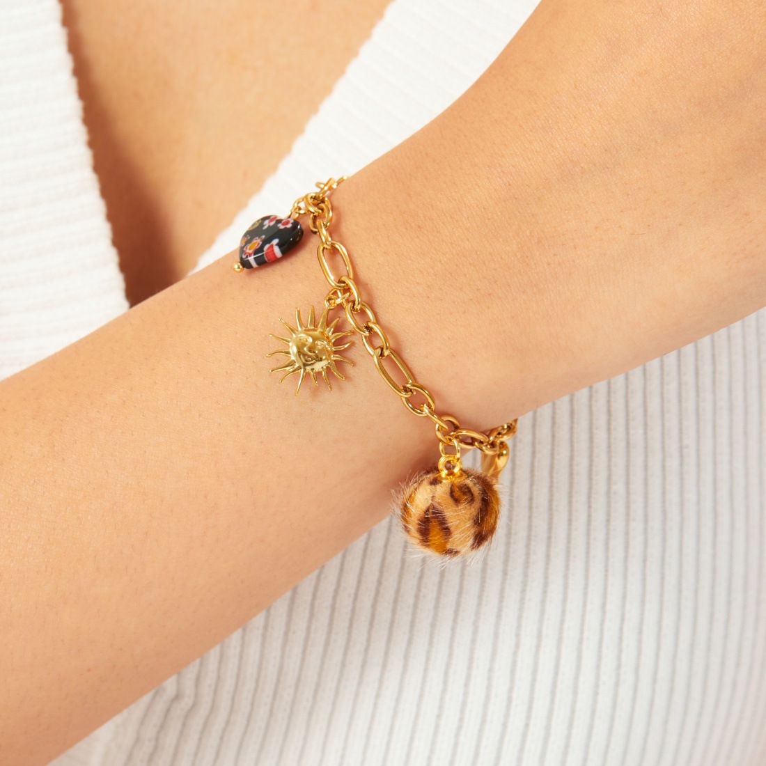 Home > New Arrival > Leopard print spherical heart-shaped gold-plated sun pendant stainless steel jewelry bracelet