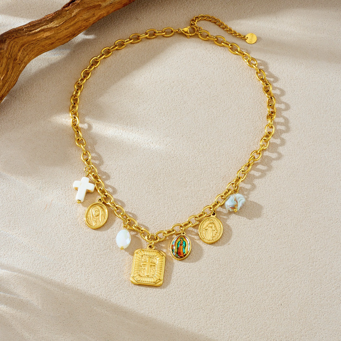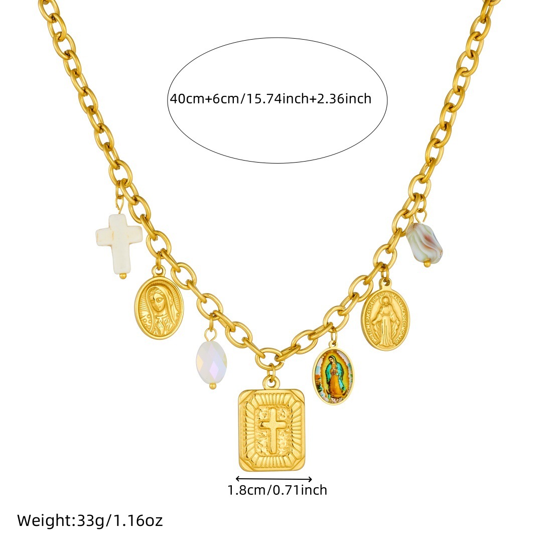 Light luxury, high-end, versatile pendant set with cross-shaped choker chain and gold-plated round pendant.