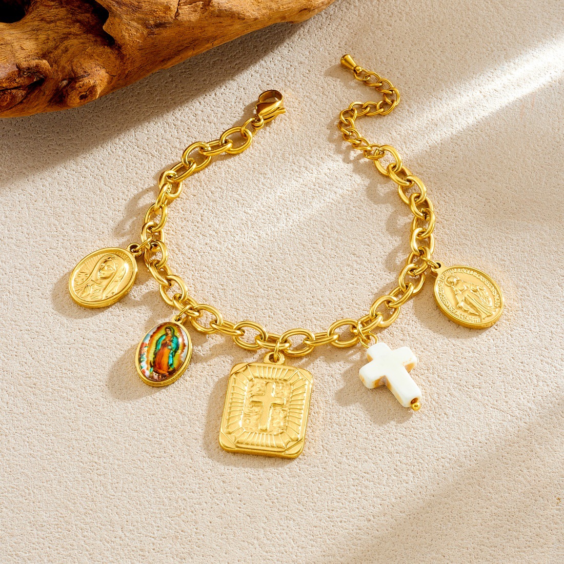 Home > New Arrival > Light luxury, high-end, versatile pendant set with cross-shaped choker chain and gold-plated round pendant.