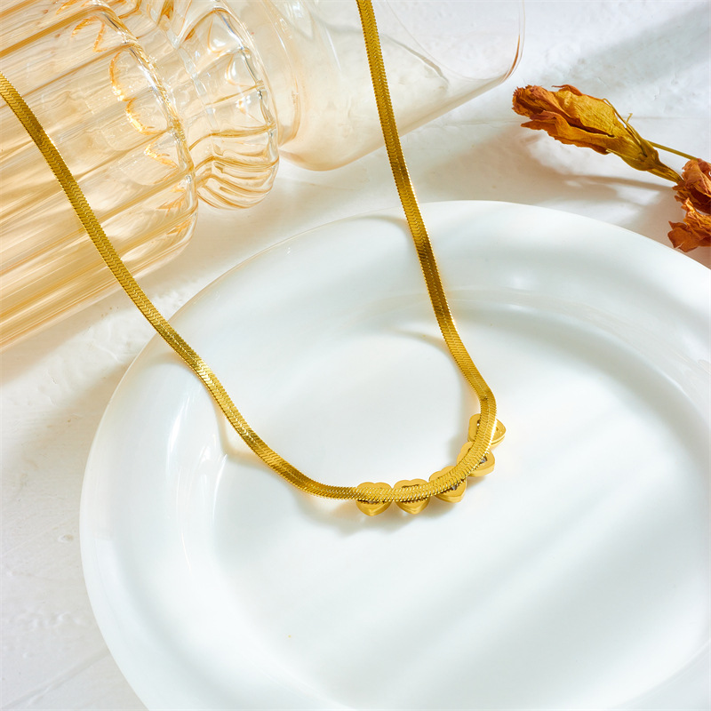 Home > New Arrival > Light luxury, simple and high-end transparent heart-shaped zircon accessories, titanium steel snake bone necklace and bracelet set.