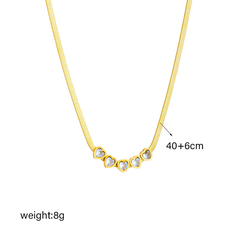 Light luxury, simple and high-end transparent heart-shaped zircon accessories, titanium steel snake bone necklace and bracelet set.