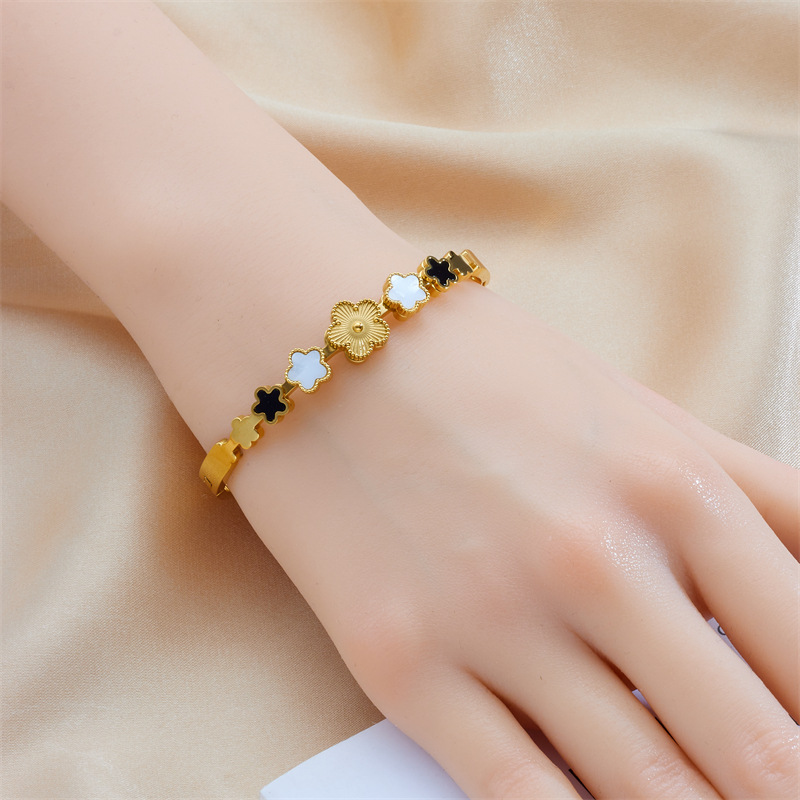 Home > New Arrival > Light luxury fashion plum blossom seashell non-fading versatile stainless steel jewelry bracelet
