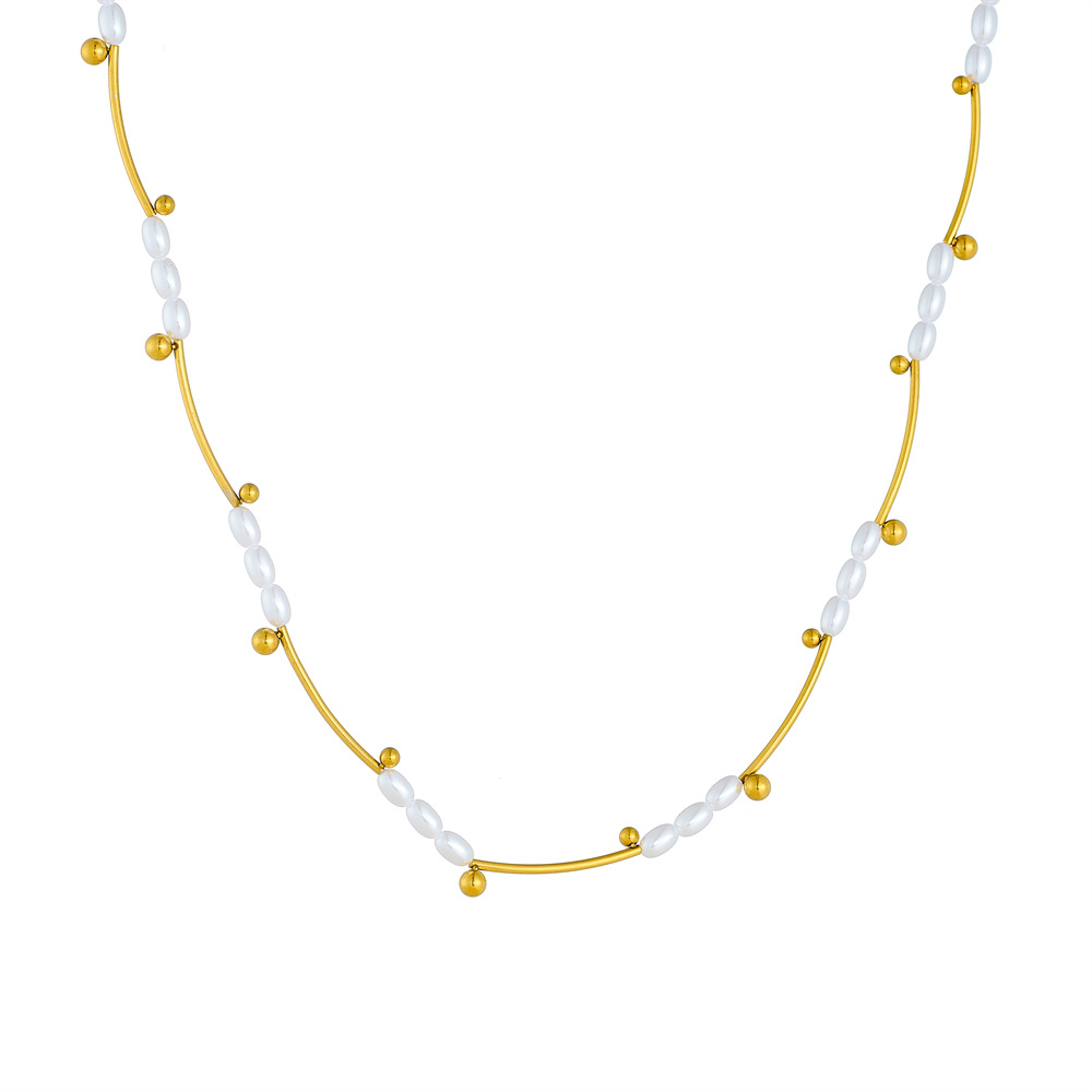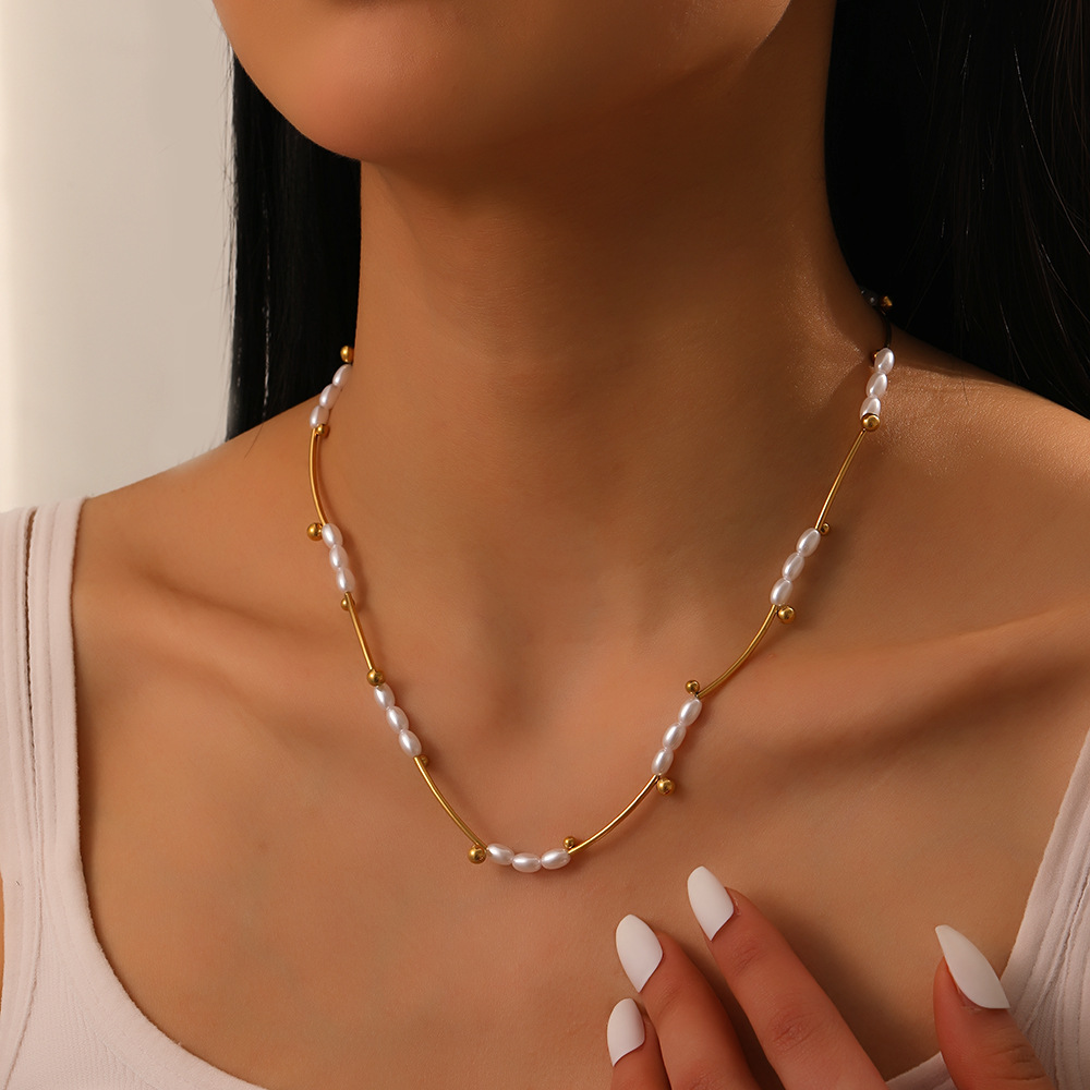 Home > New Arrival > Light luxury oval pearl long bar with gold-plated stainless steel choker necklace