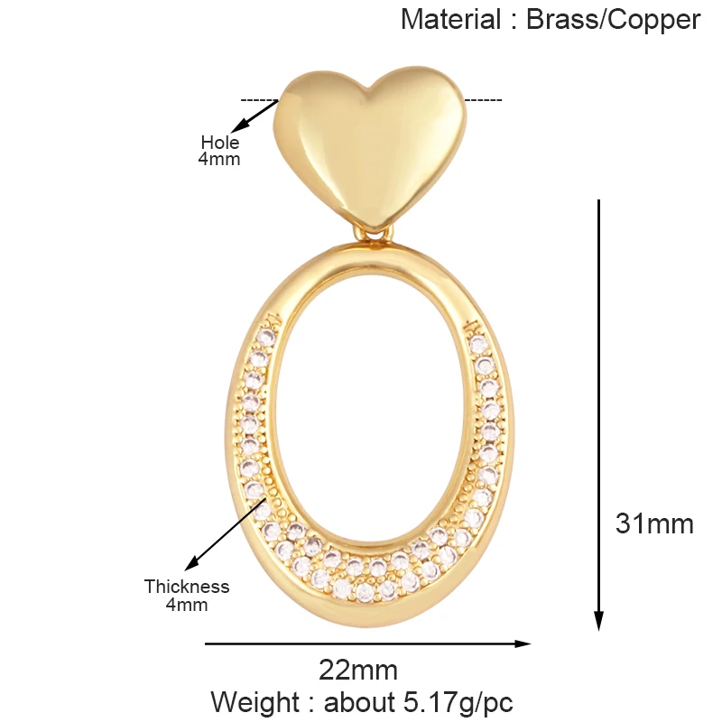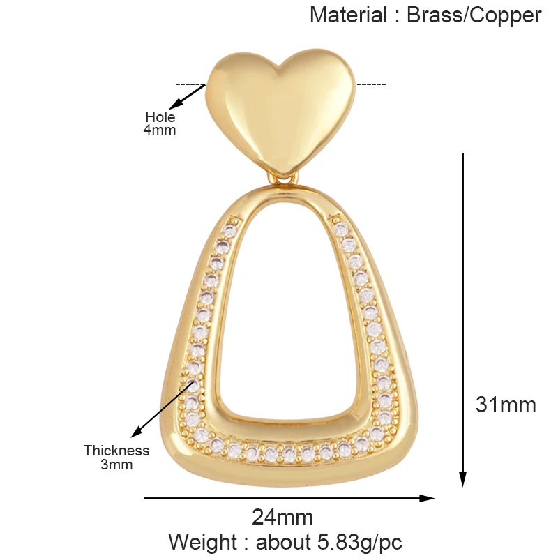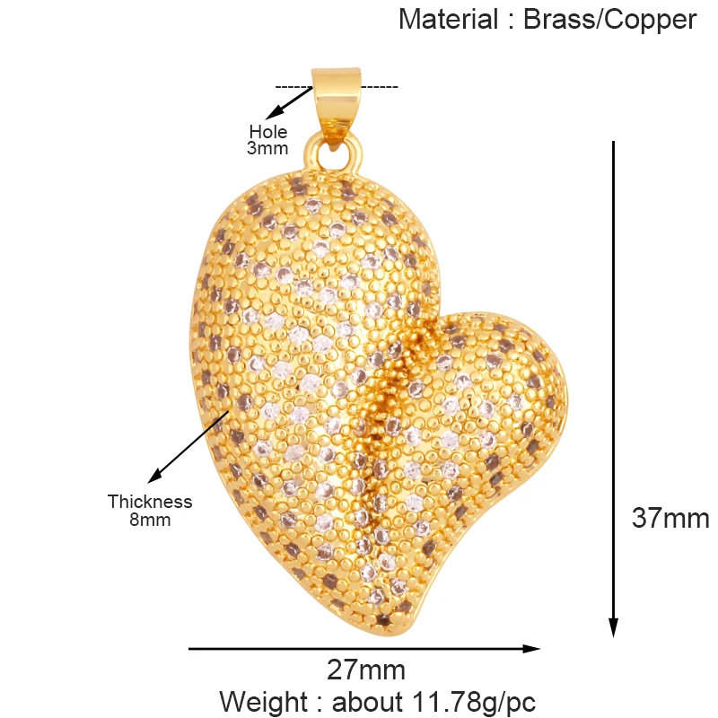 Luxury Classics Colourful Heart Shape Charm Pendant,Creative Love Heart Cubic Zirconia Real 18K Gold Plated Jewelry Supplies K92
