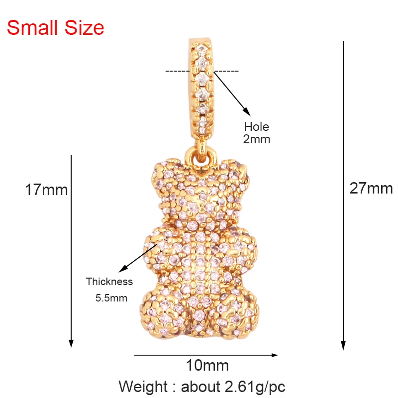 Luxury Fine Inlaid Rainbow Cubic Zironia Charm Pendant,Cute Bear Jewelry Necklace Bracelet Making Wholesale Supplies M85