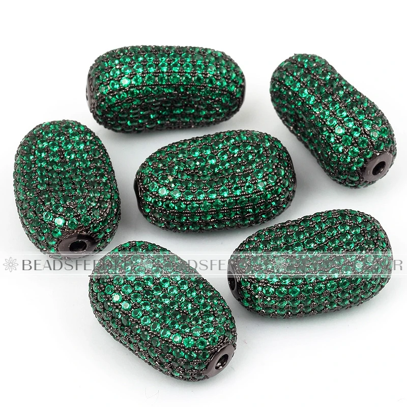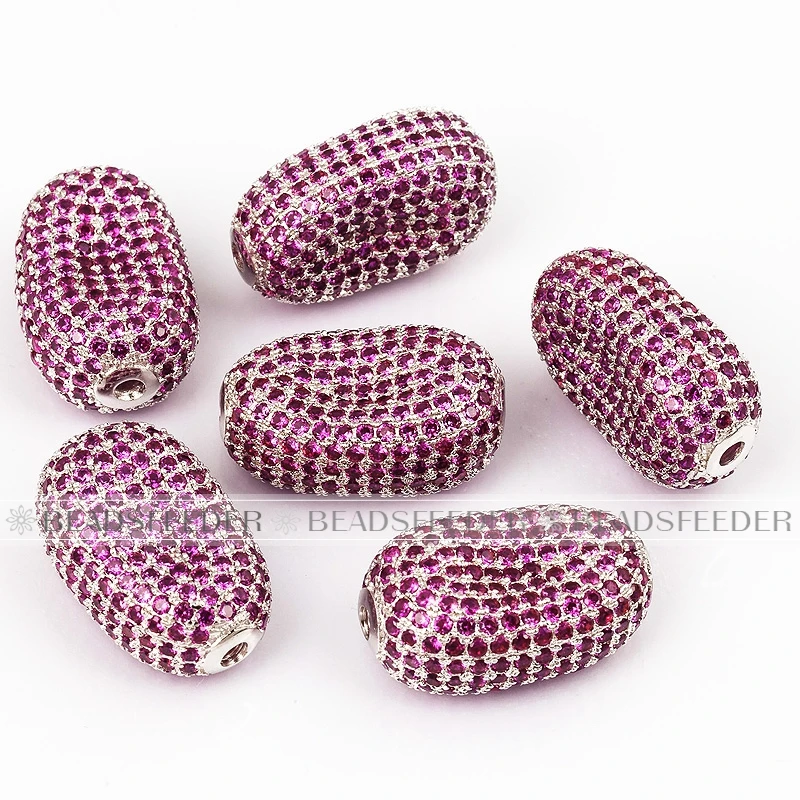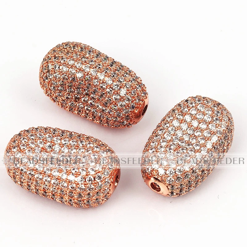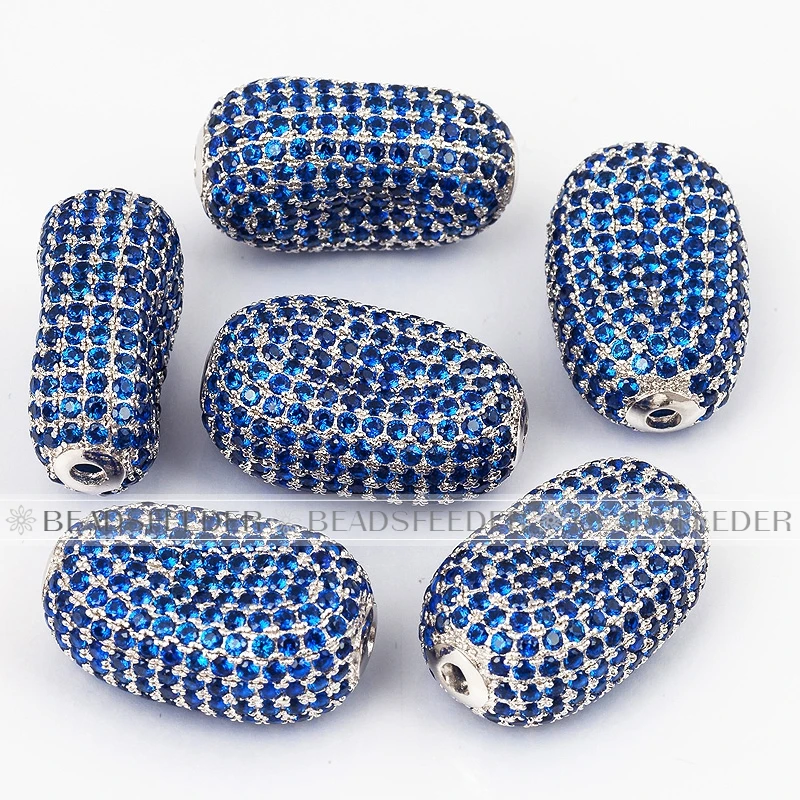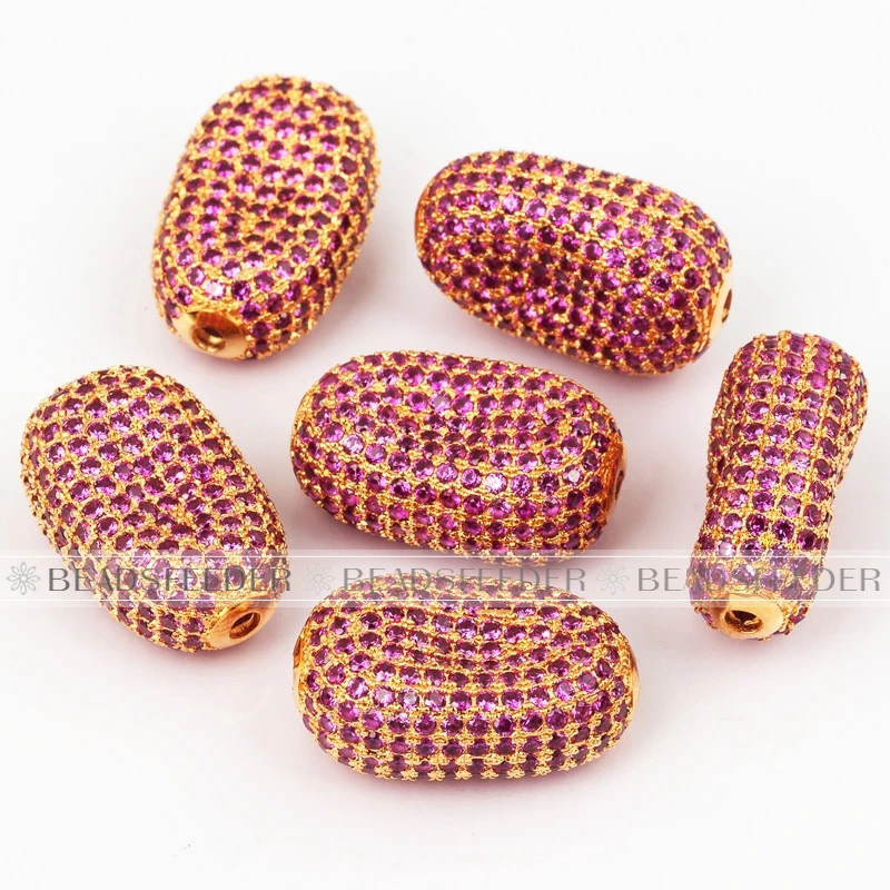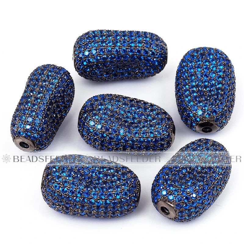 Luxury Fully Paved Bean bead,Micro Pave Clear Blue Fuchsia Gold Silver Cubic Zirconia space beads, Men Bracelet Charm Pave Beads