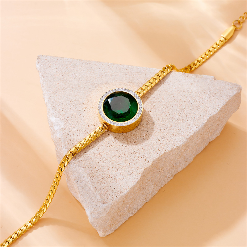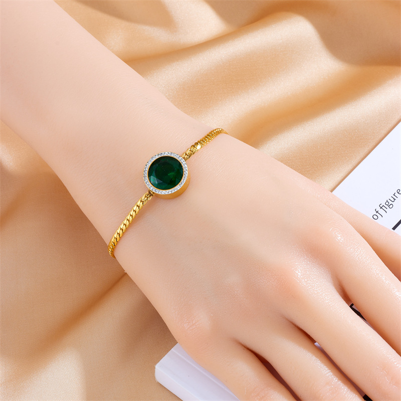 Home > New Arrival > Metal retro minimalist versatile gold-plated stainless steel round rhinestone woven braided chain bracelet