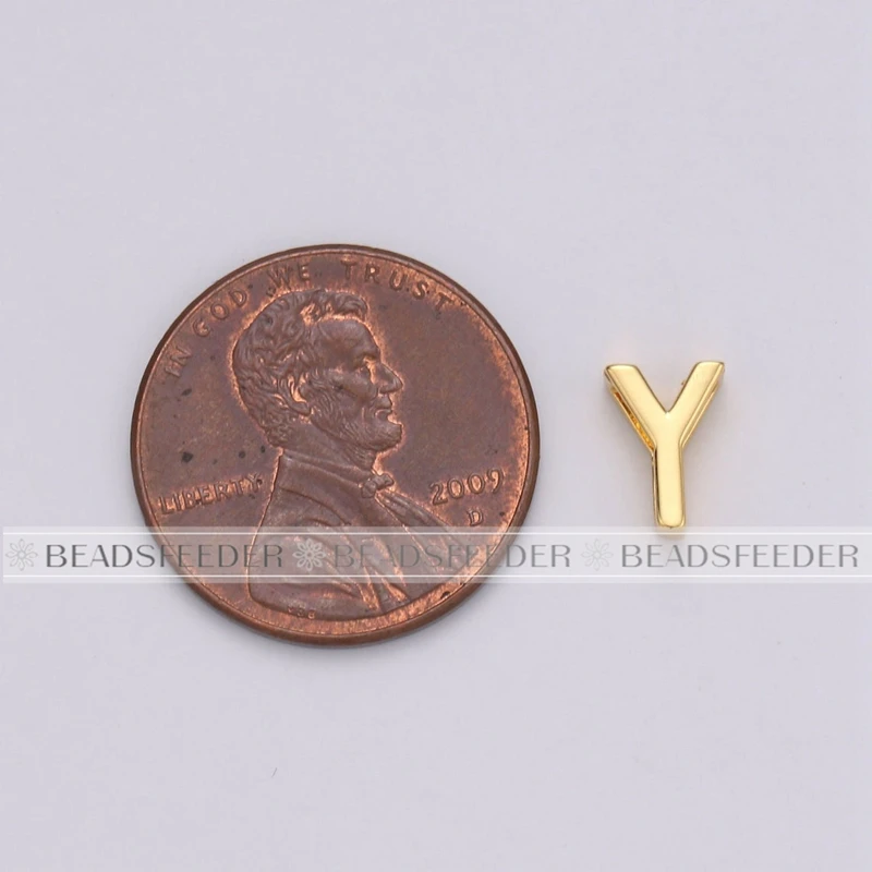Mini Initial Letter Slider Beads, Name Pendant With Gold Plated Colour , Not Easy to Tarnish, Fashion Jewelry Findings , 1pc L01