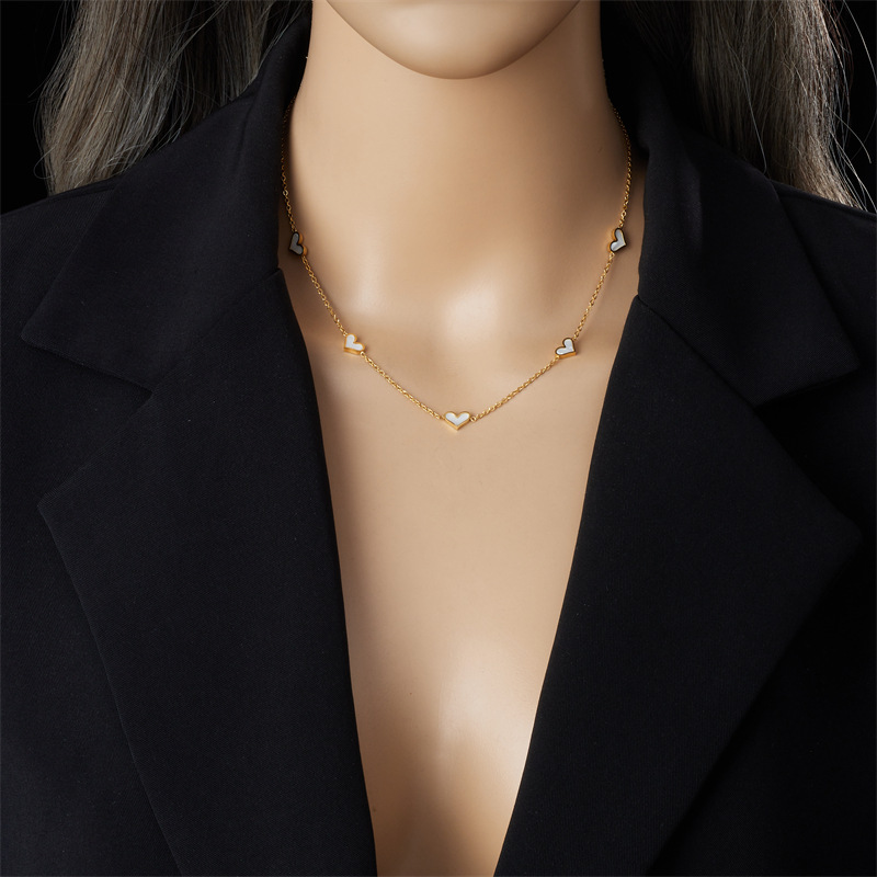 Home > New Arrival > Minimalist design white heart-shaped accessories jewelry necklace and earrings stainless steel two-piece set