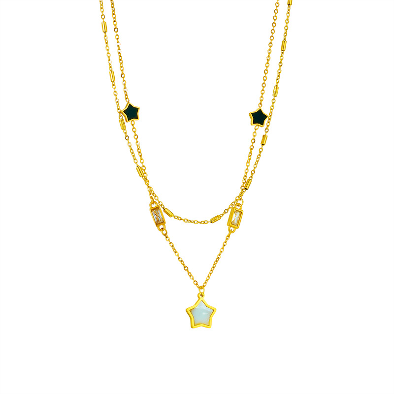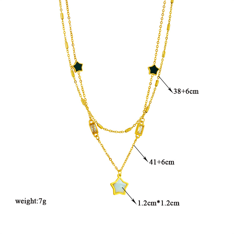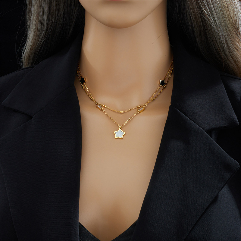 Home > New Arrival > Minimalist double-layered necklace with unique design, black and white five-pointed star and diamond-encrusted square jewelry, elegant and sophisticated.