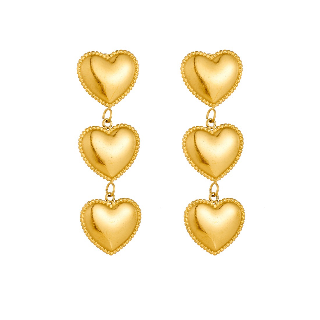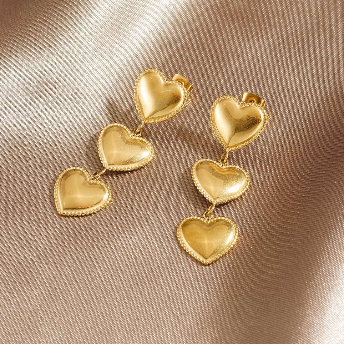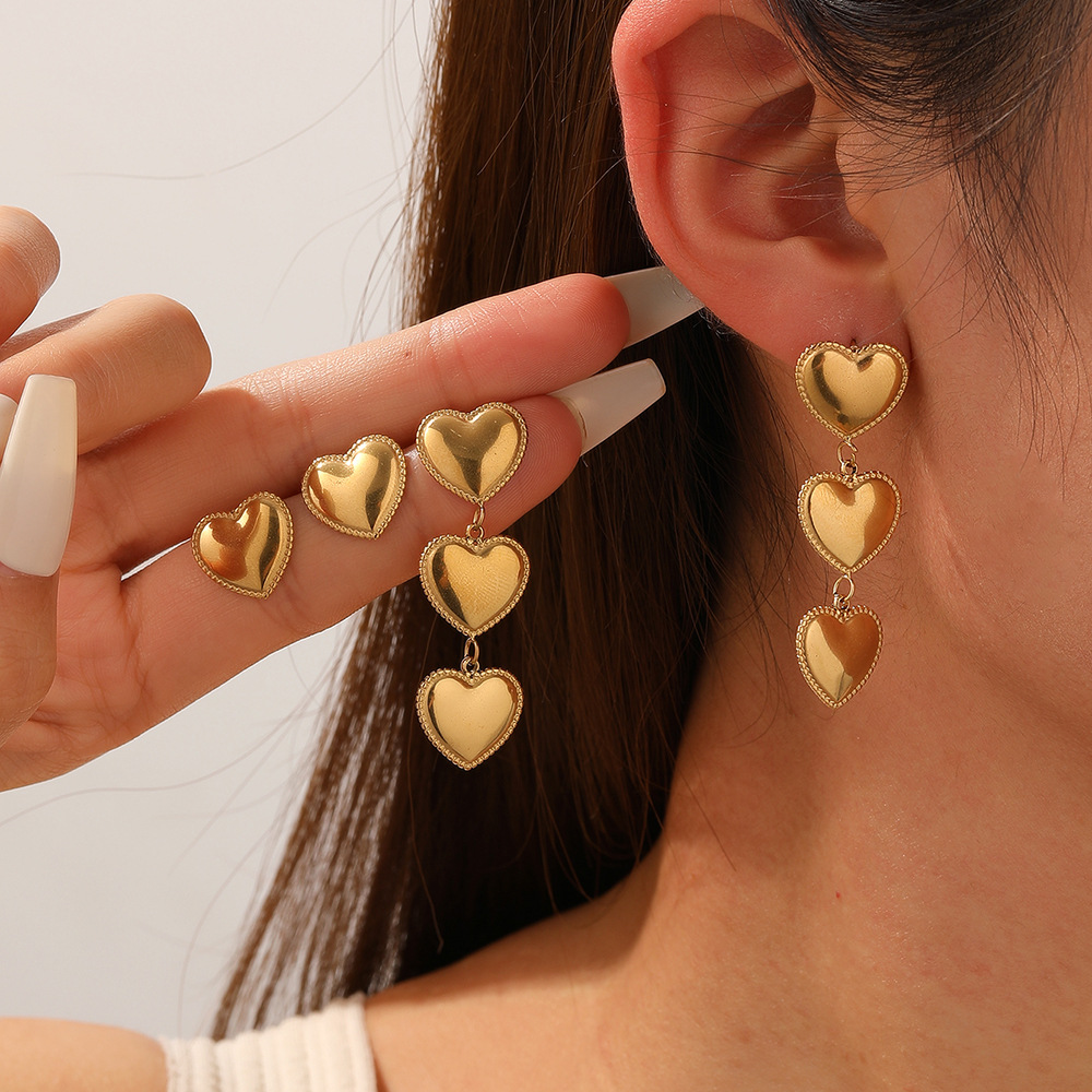 Home > New Arrival > Minimalist fashion, glossy gold-plated heart-shaped long dangling earrings, stainless steel jewelry.