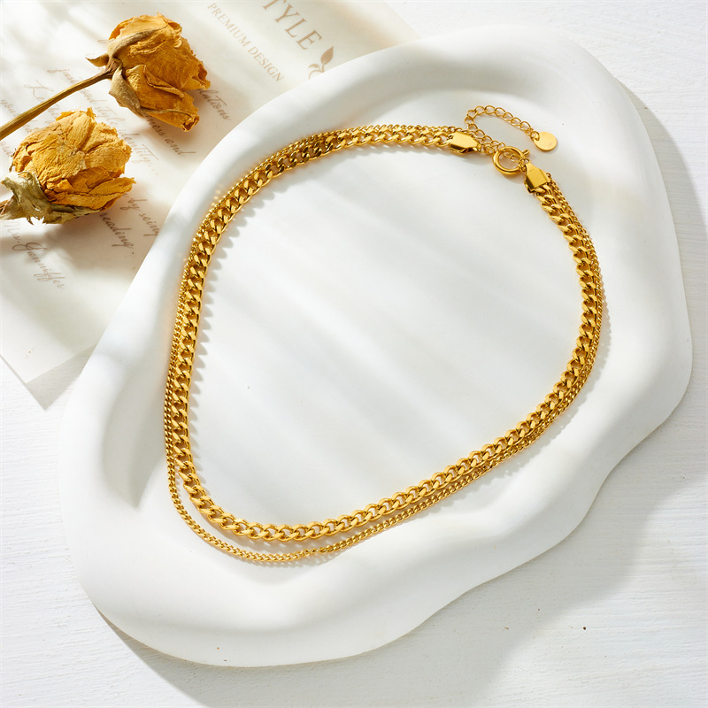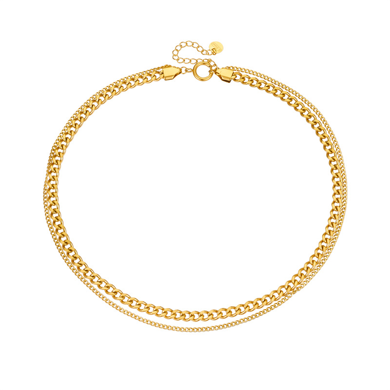 Home > New Arrival > Minimalist punk hip-hop double-layer chain gold-plated stainless steel women's jewelry necklace