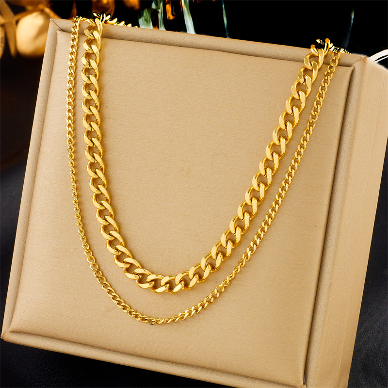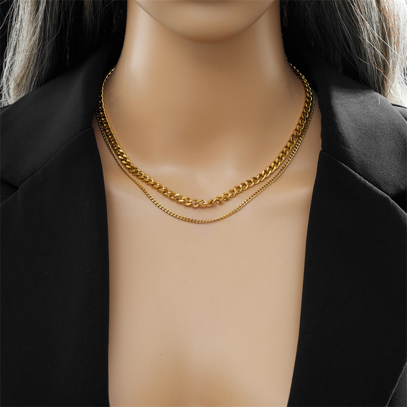 Minimalist punk hip-hop double-layer chain gold-plated stainless steel women's jewelry necklace