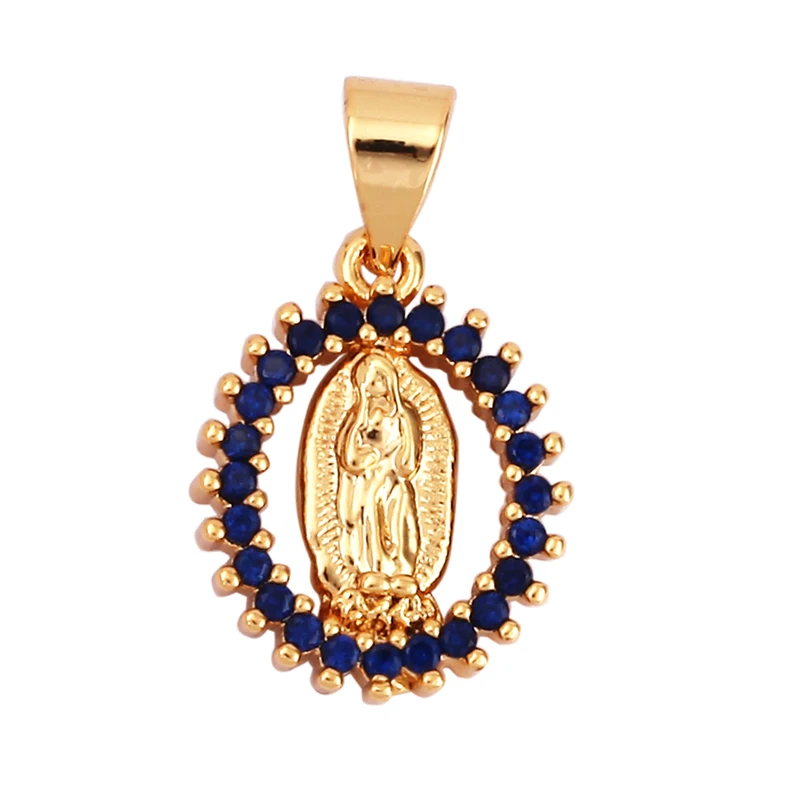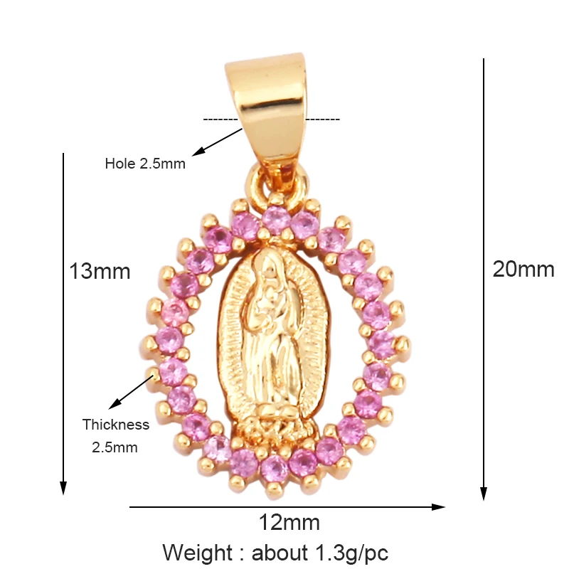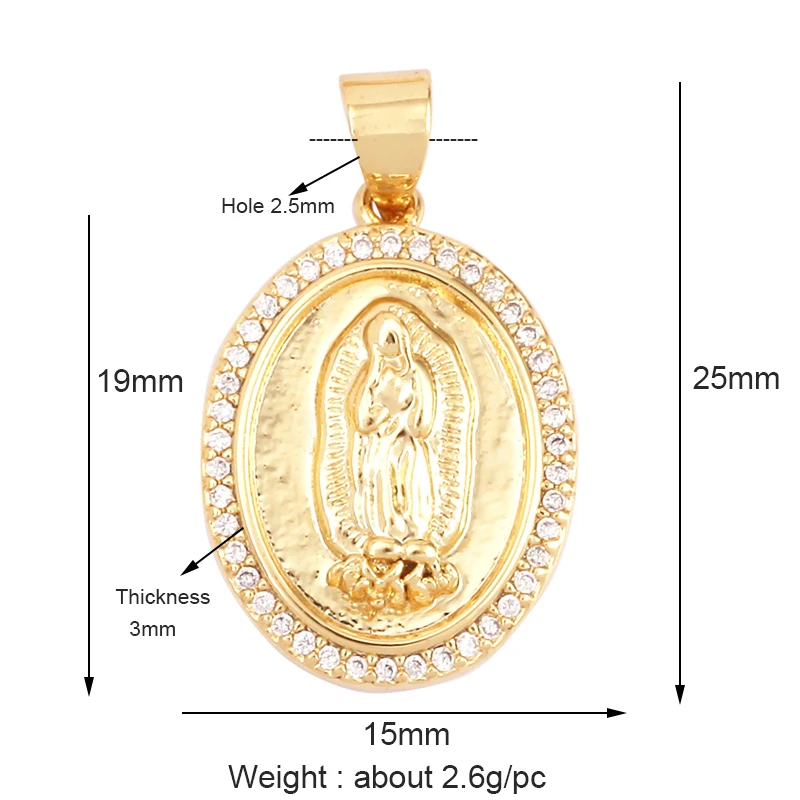 Miraculous Medal Charm Oval Heart Round Pendan,Colour CZ Paved,Real Gold Plated ,Necklace Bracelet Making Finding Supplies K11