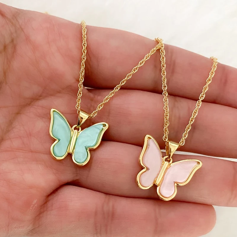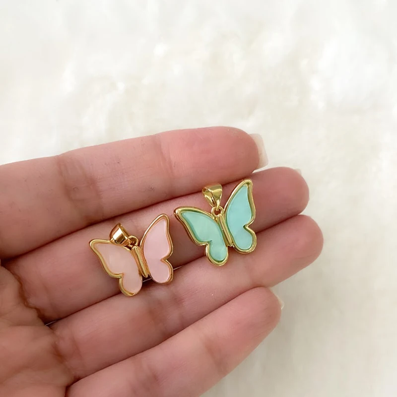 Mother of Pearl Dainty Butterfly Charm Pendant,Fashion Romantic Sweet Colorful Transparent Pendant , Girl Gift Party Jewelry L49