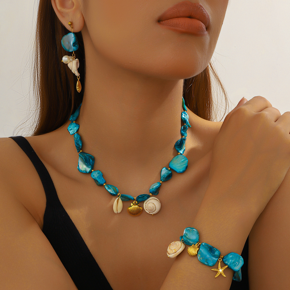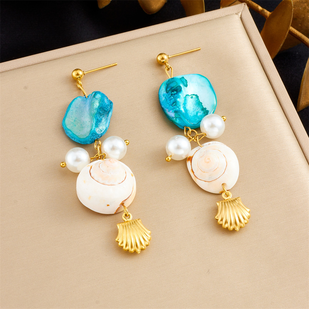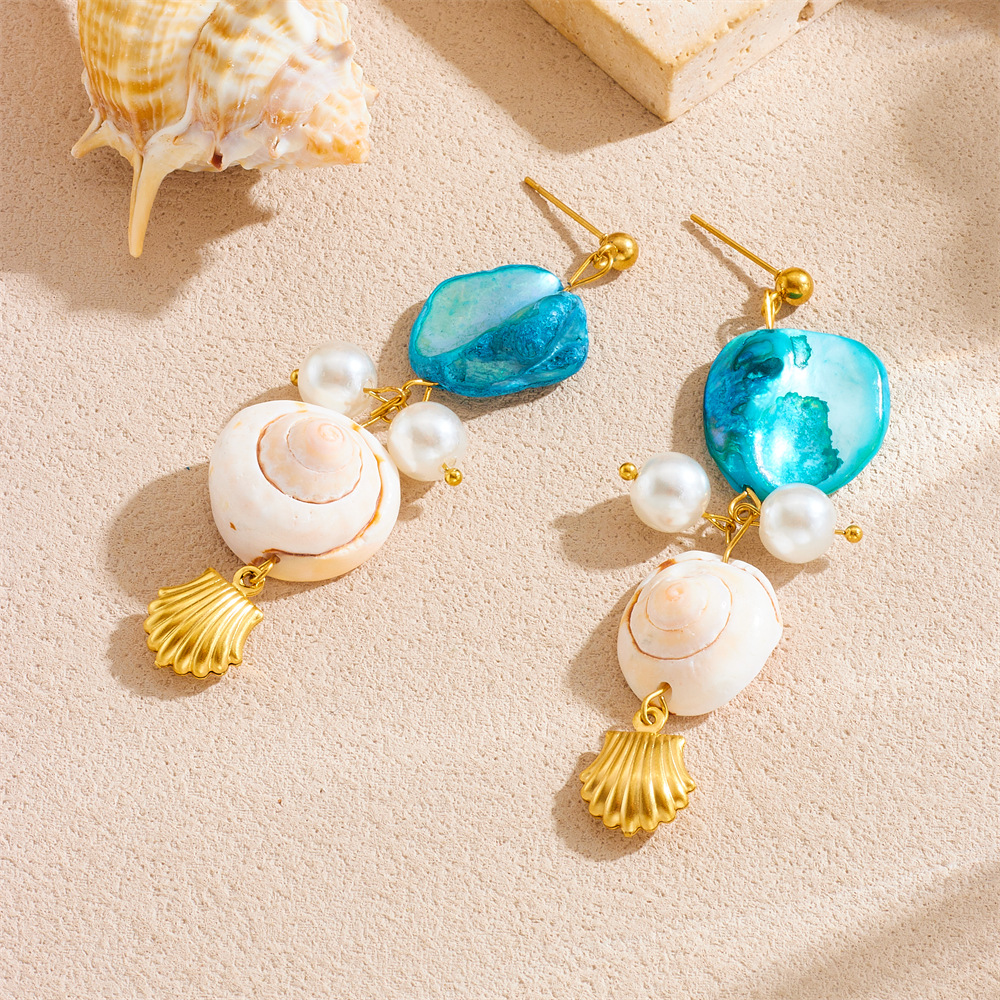 Home > New Arrival > New conch shell pearl accessories pendant earrings necklace bracelet summer beach vacation set
