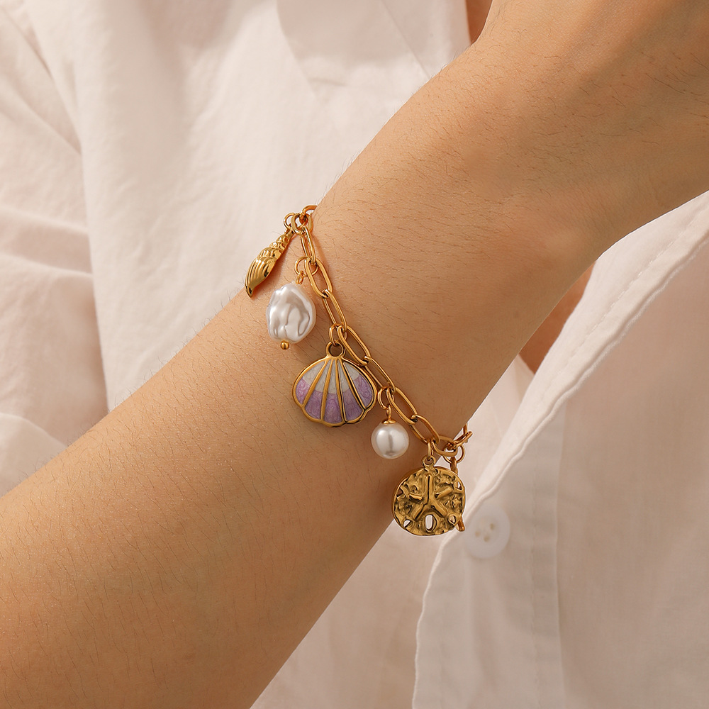 New creative ocean series stainless steel bracelet with cartoon dripping pearl, seashell, fishtail, starfish jewelry for women