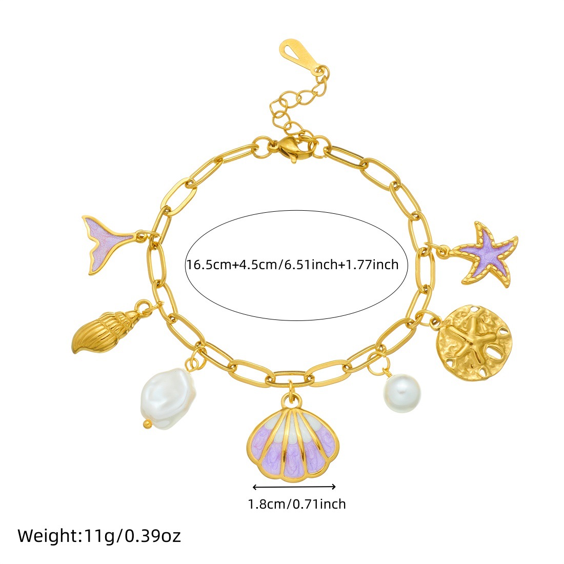 Home > New Arrival > New creative ocean series stainless steel bracelet with cartoon dripping pearl, seashell, fishtail, starfish jewelry for women