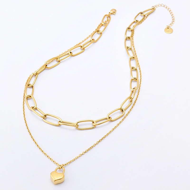 Home > New Arrival > New double-layer chain heart lock pendant titanium steel metal hip-hop high-end minimalist style necklace