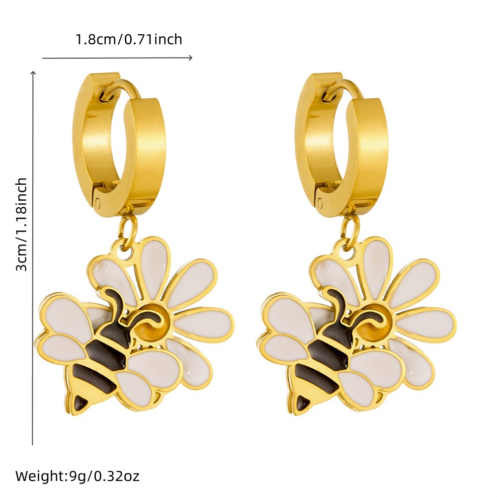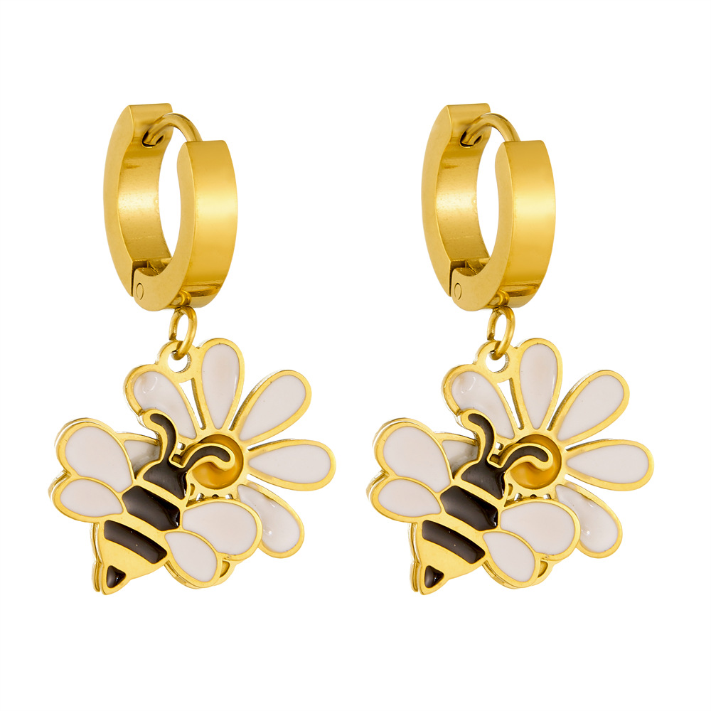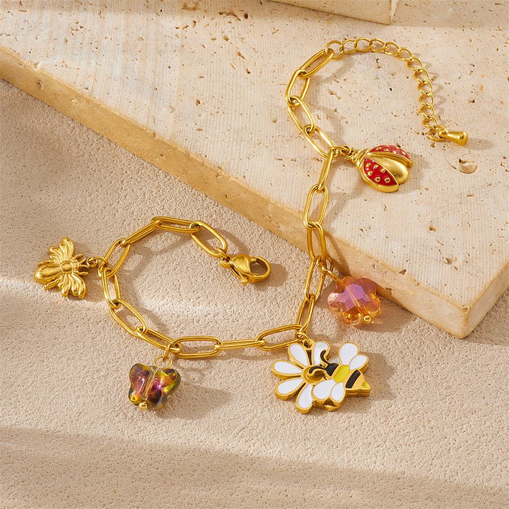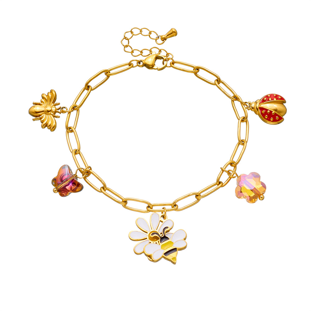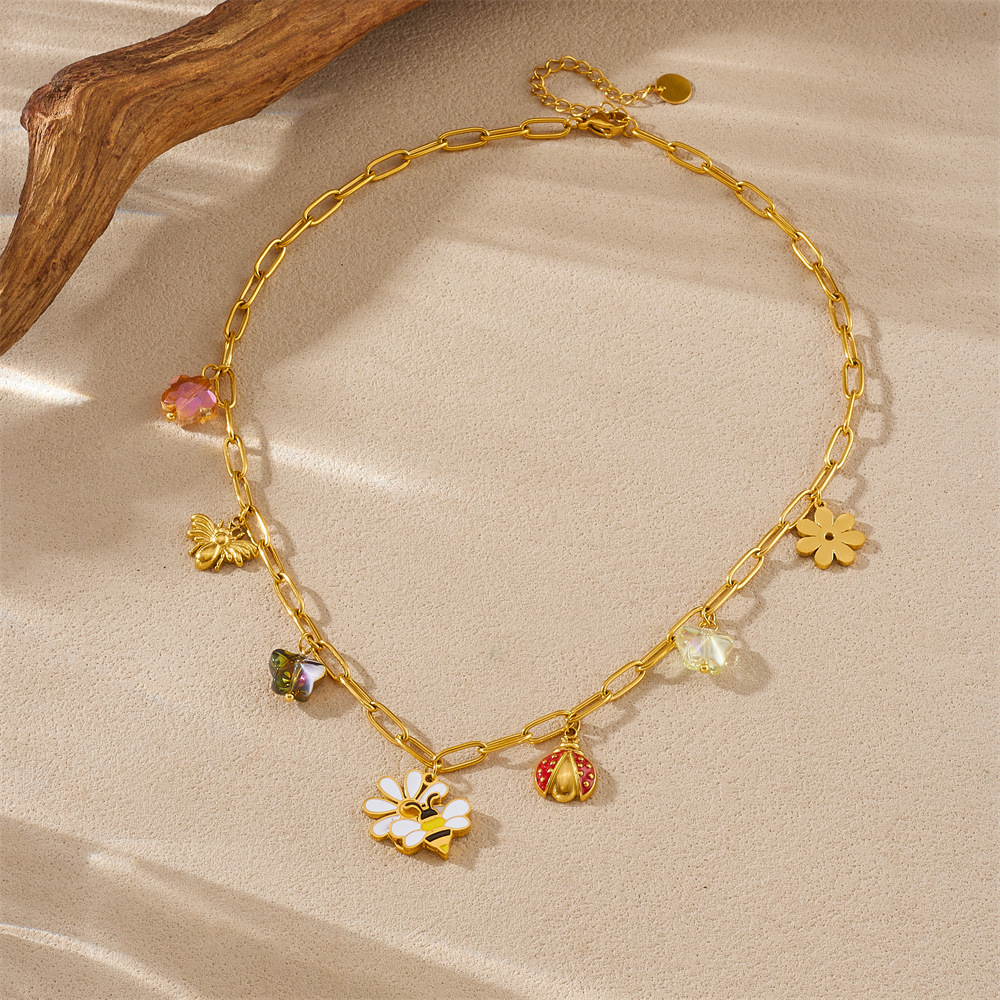 Home > New Arrival > New fashion cartoon pastoral style dripping flower bee ladybug pendant accessory stainless steel jewelry set