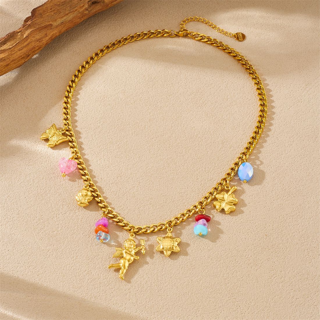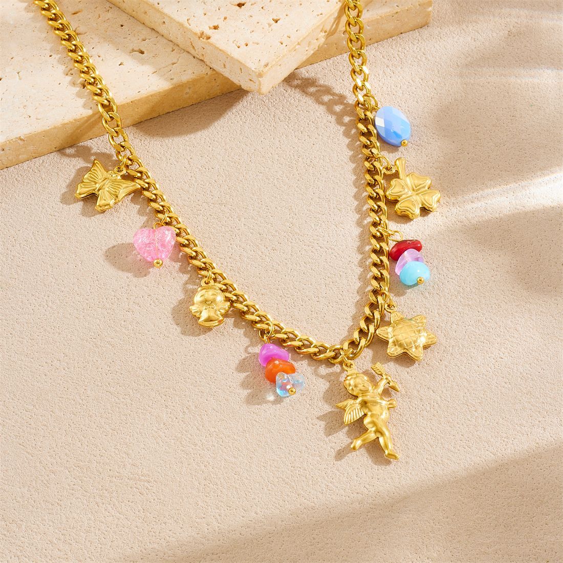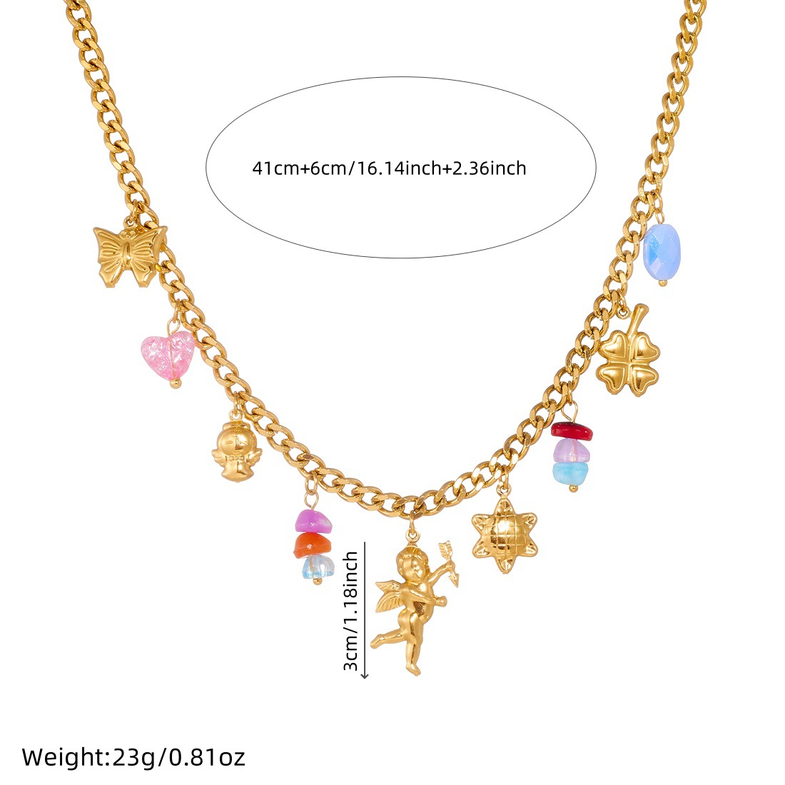 Home > New Arrival > New fashion cute cartoon gold-plated 3D butterfly angel flower pendant stainless steel jewelry set