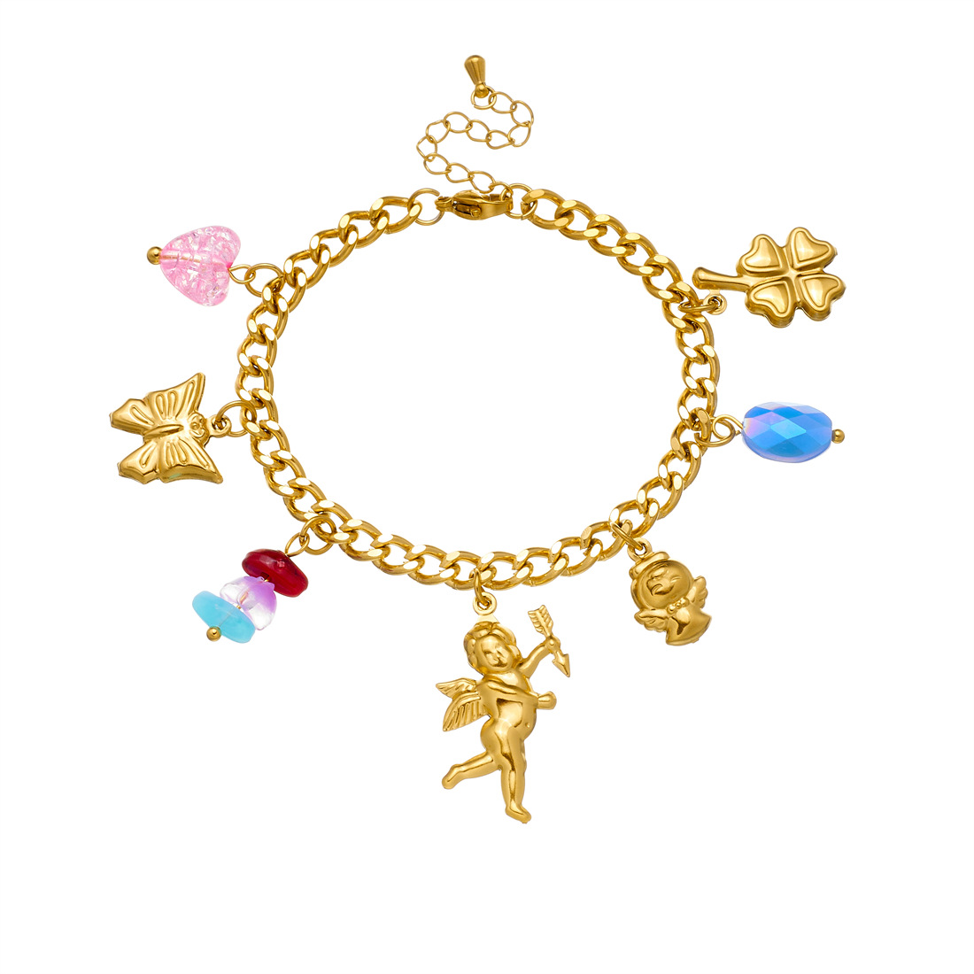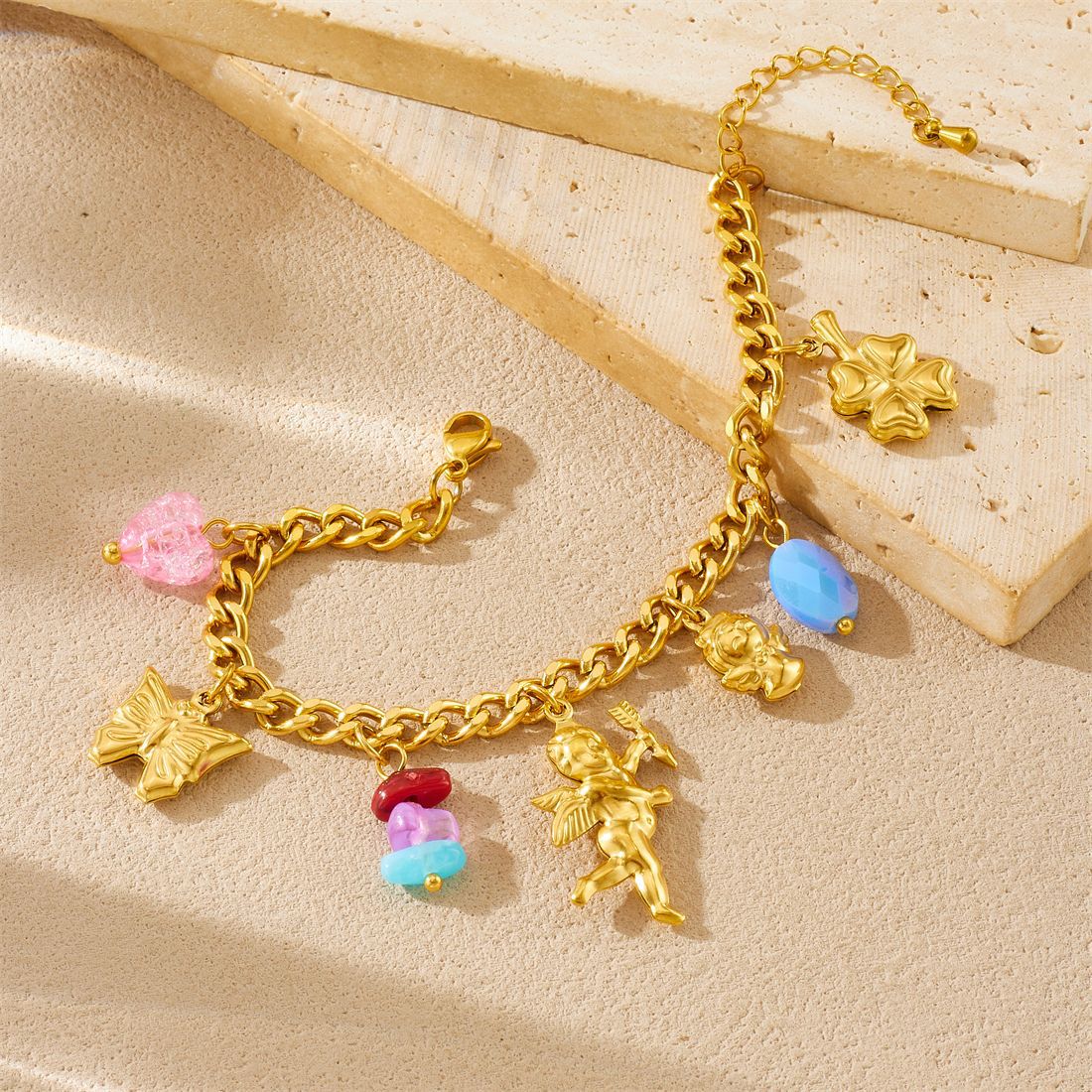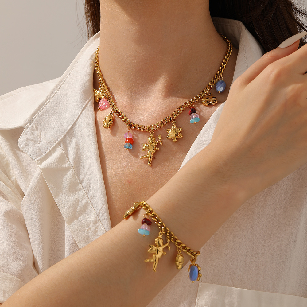 Home > New Arrival > New fashion cute cartoon gold-plated 3D butterfly angel flower pendant stainless steel jewelry set