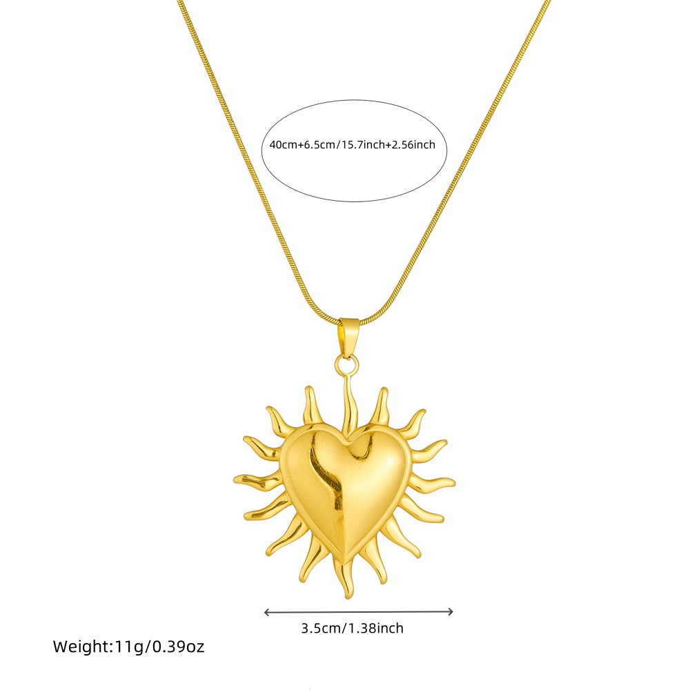 New fashion glossy gold-plated stainless steel sun heart pendant, unique and creative jewelry necklace
