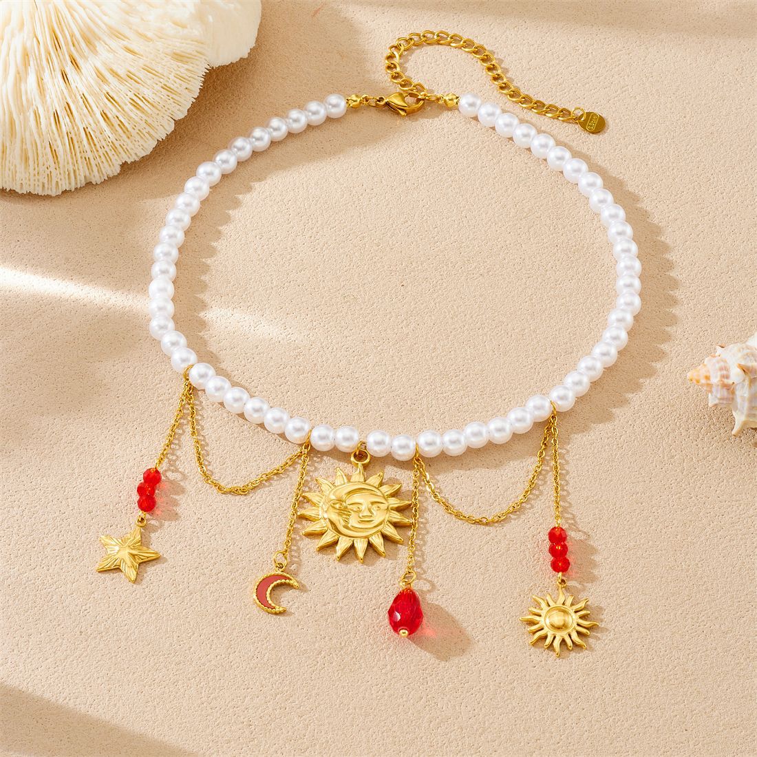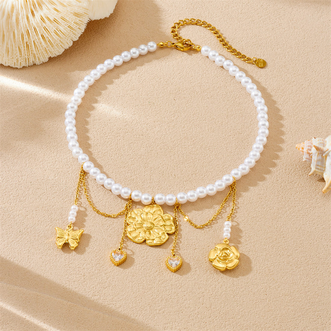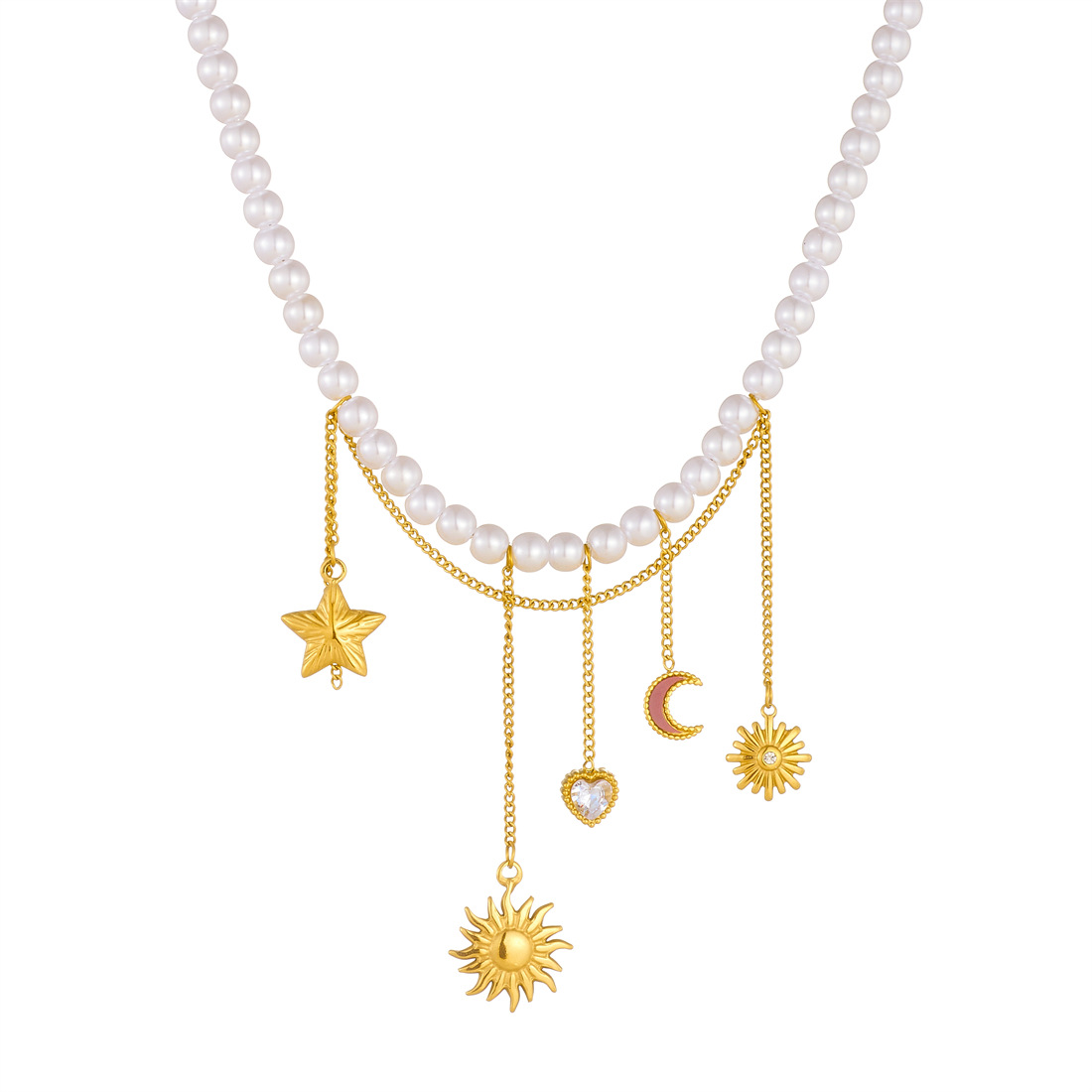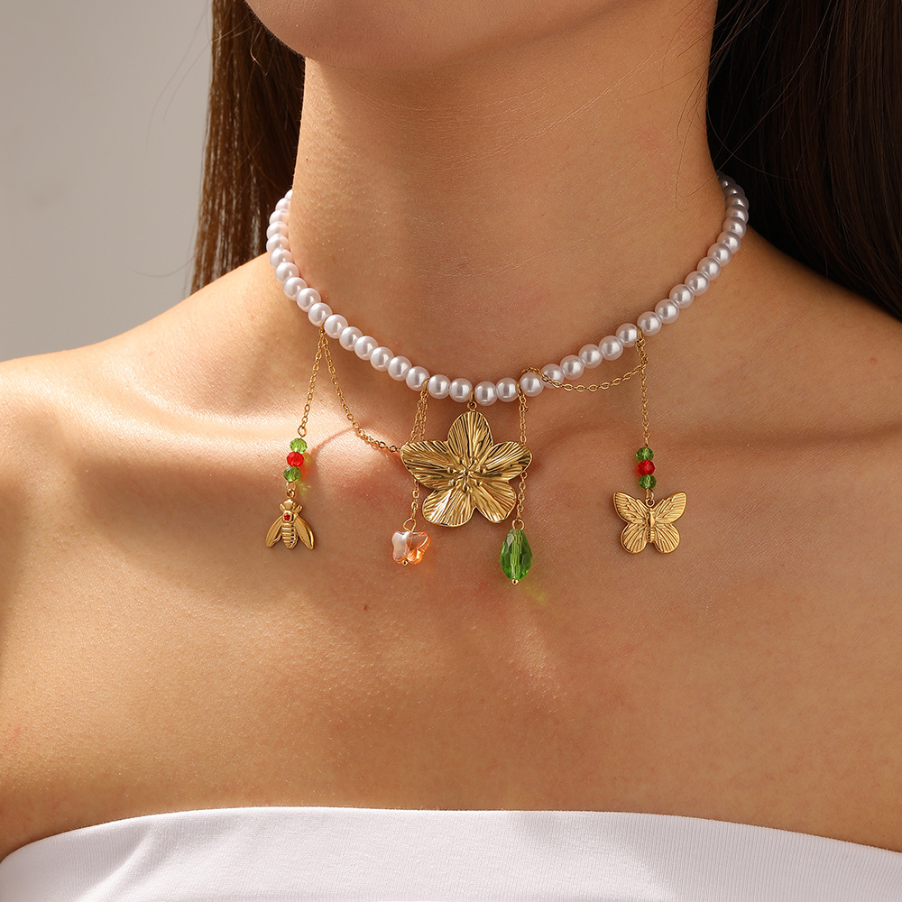 Home > New Arrival > New fashion stainless steel beaded women's necklace with sunflower pendant and tassel.