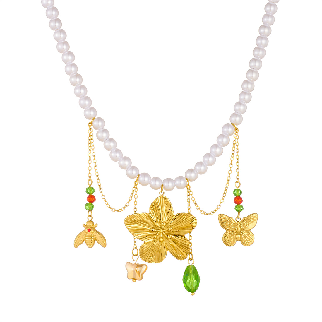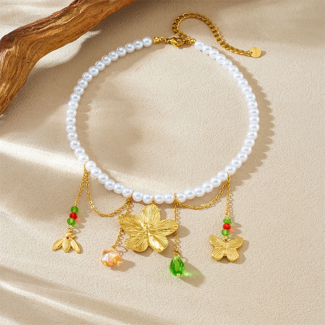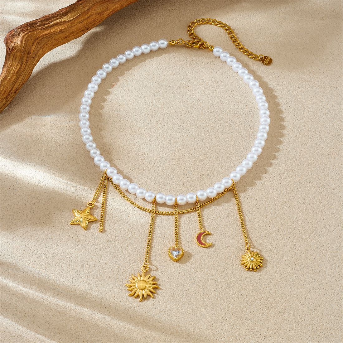 Home > New Arrival > New fashion stainless steel beaded women's necklace with sunflower pendant and tassel.