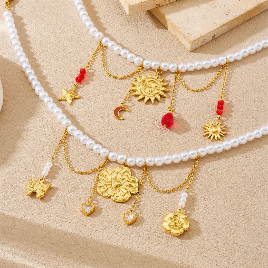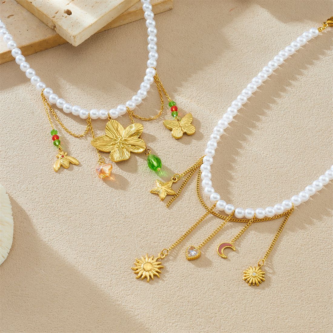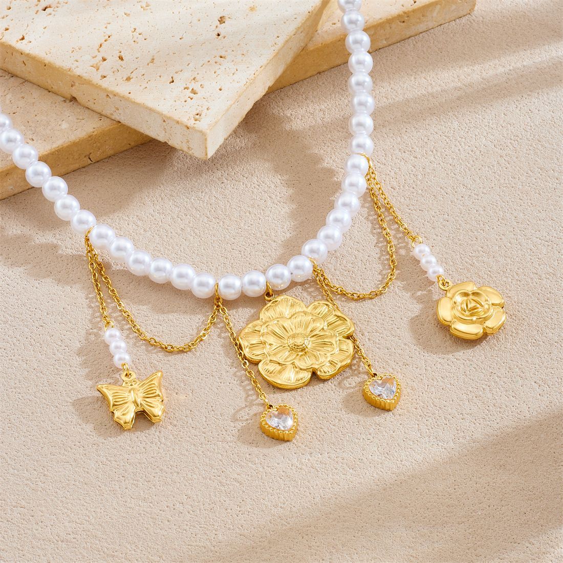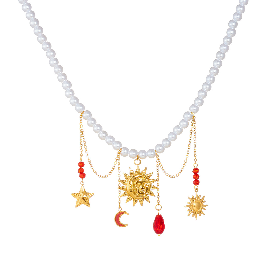 Home > New Arrival > New fashion stainless steel beaded women's necklace with sunflower pendant and tassel.