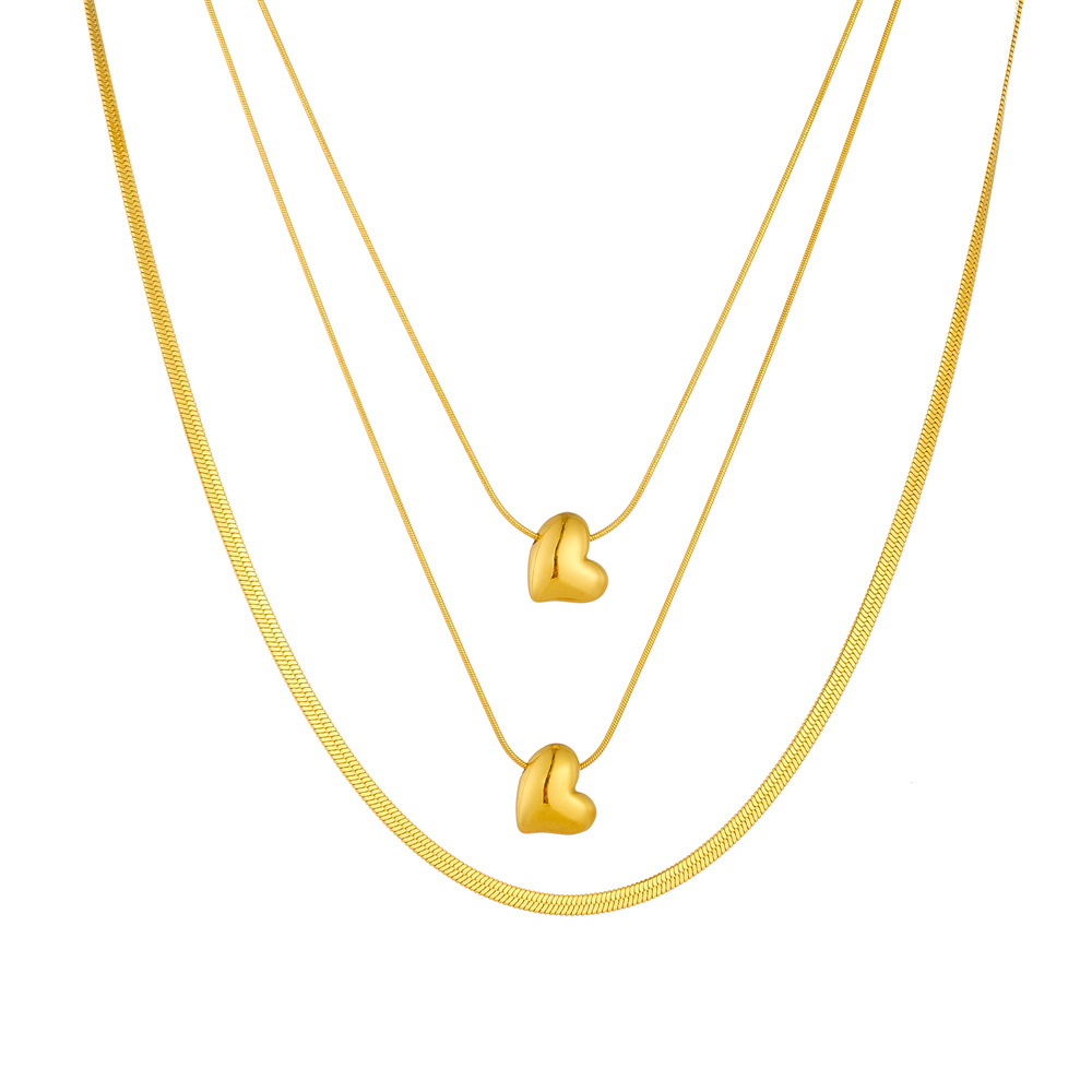 New fashion style gold-plated smooth heart pendant multi-layer chain stainless steel minimalist style necklace
