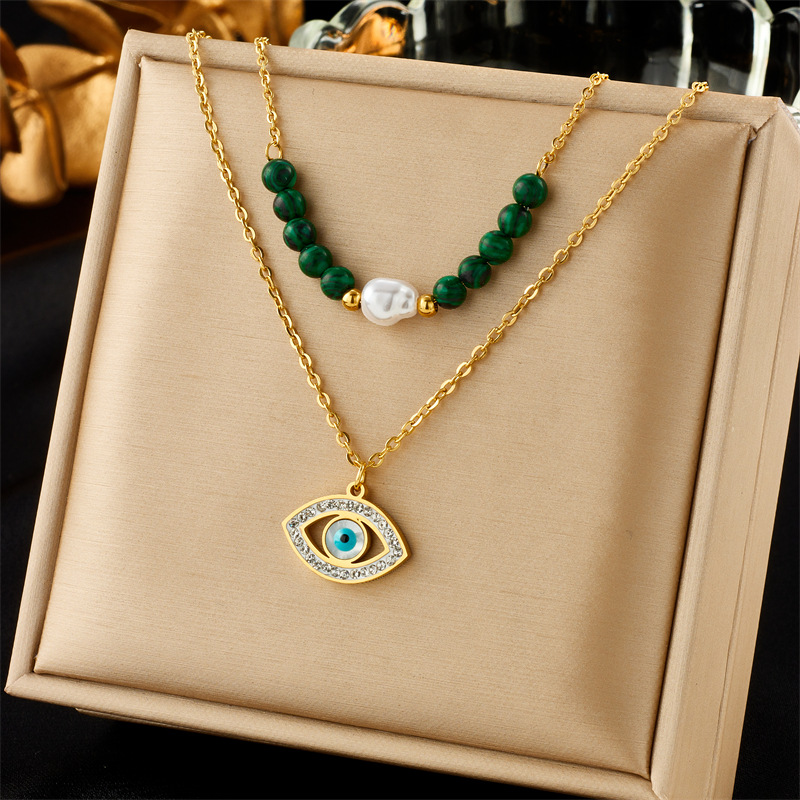 New fashionable and unique multi-layered clavicle chain necklace with pearl, butterfly, heart, and portrait pendants.